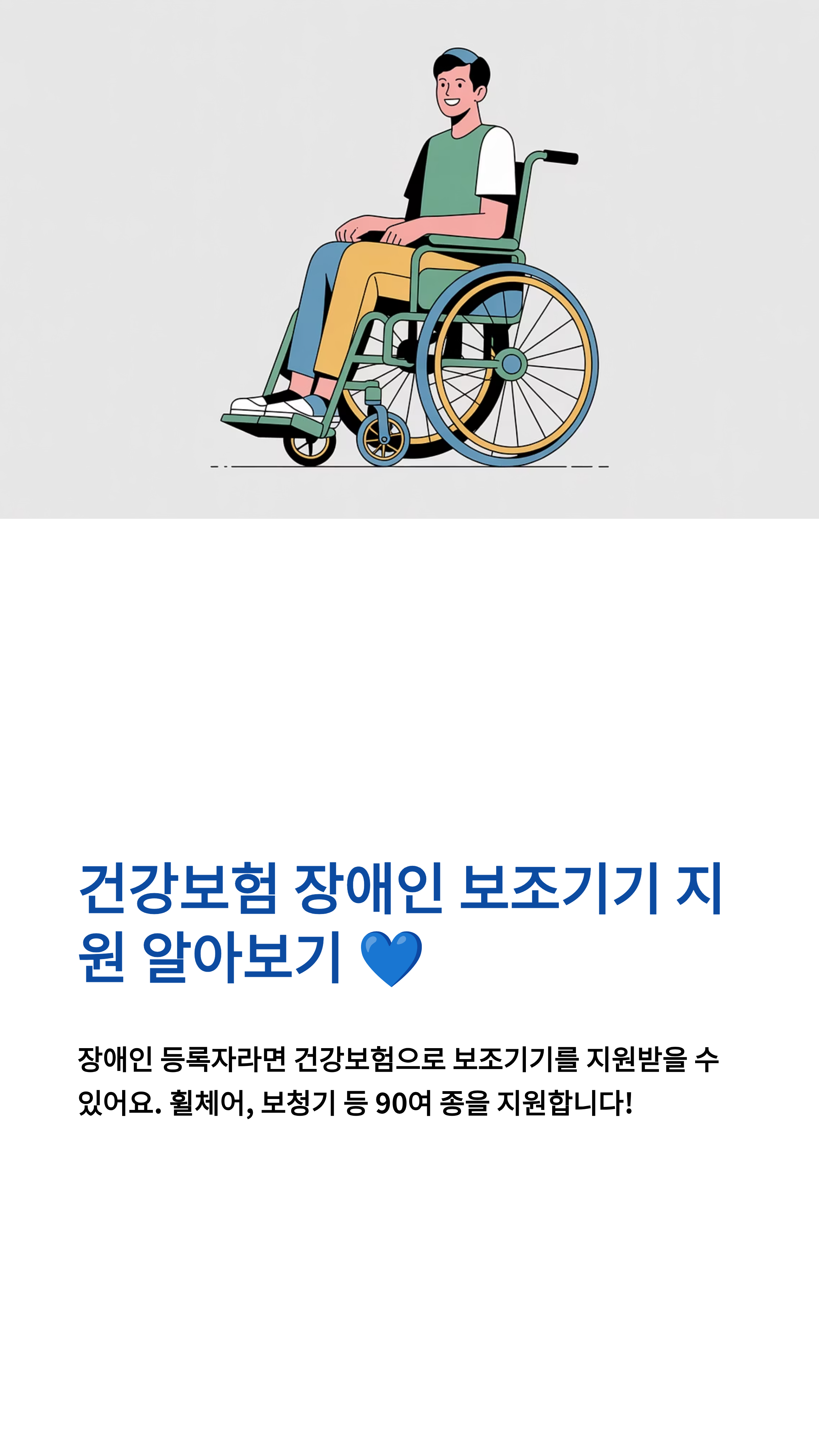 - **지원 대상 확인.** 건강보험 가입자 중 **등록 장애인**이며, **장애 유형에 맞는 품목**을 신청해야 합니다.