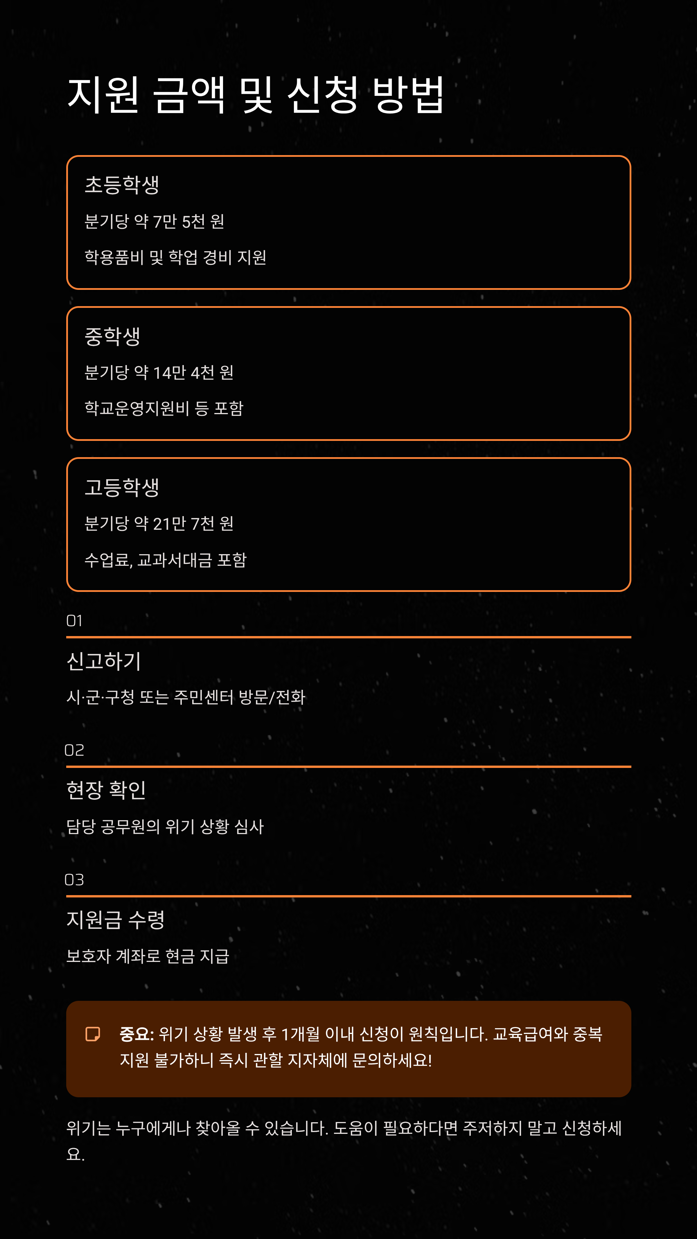 박모모씨의 사례처럼, 긴급지원 제도는 예기치 않은 위기로 인해 학업을 포기해야 할지도 모르는 순간에 아이들의 미래를 지켜줄 수 있는 안전망 역할을 톡톡히 합니다. 위기 상황이 닥치면 절대 혼자 고민하지 마시고, 주저 없이 지원을 신청해 보세요!