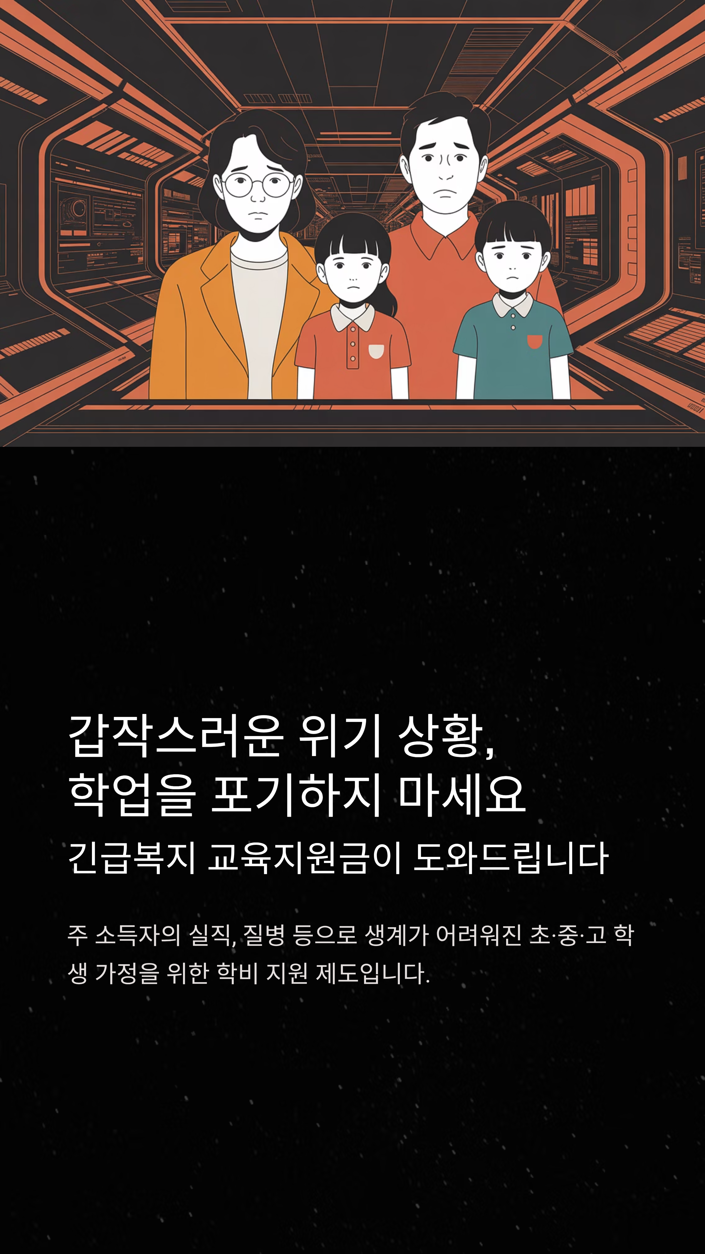- 첫 번째 핵심 포인트. 긴급복지 교육지원은 '갑작스러운 위기 상황'에 처한 가정의 초·중·고 학생을 위한 제도입니다.