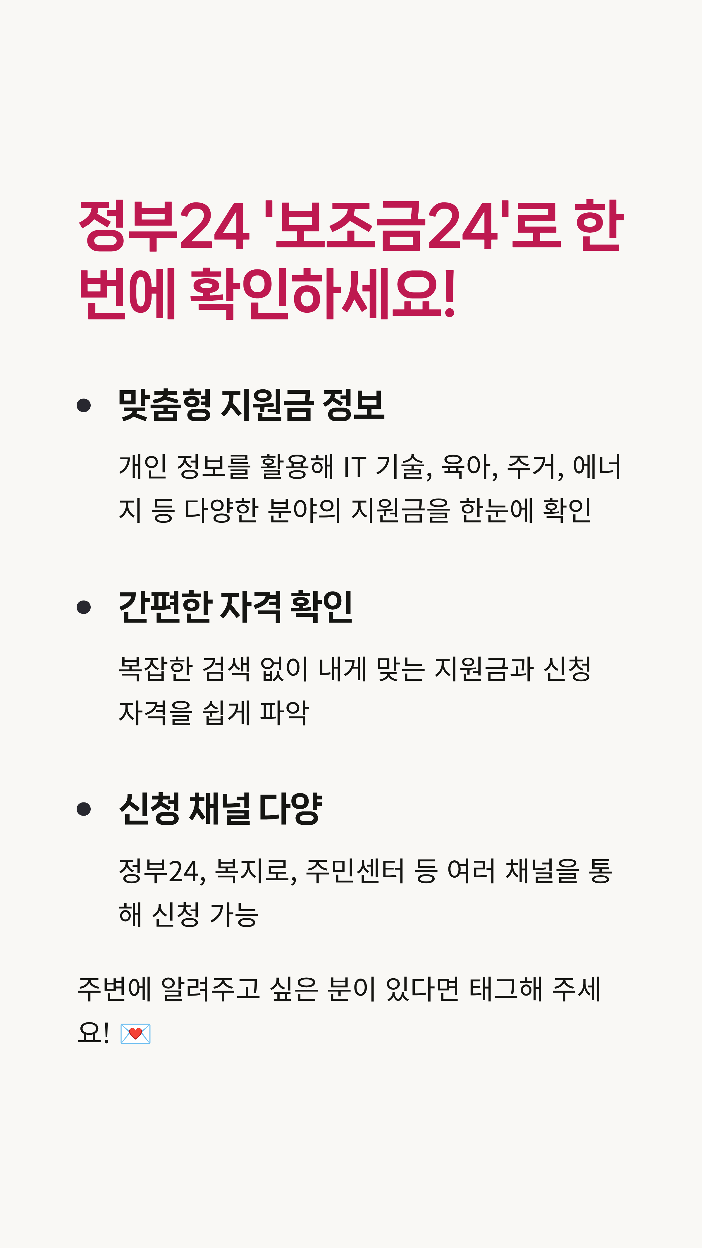 → 최종 결론을 여기에 명시합니다: 나에게 맞는 지원금 정보가 한눈에 나타납니다!