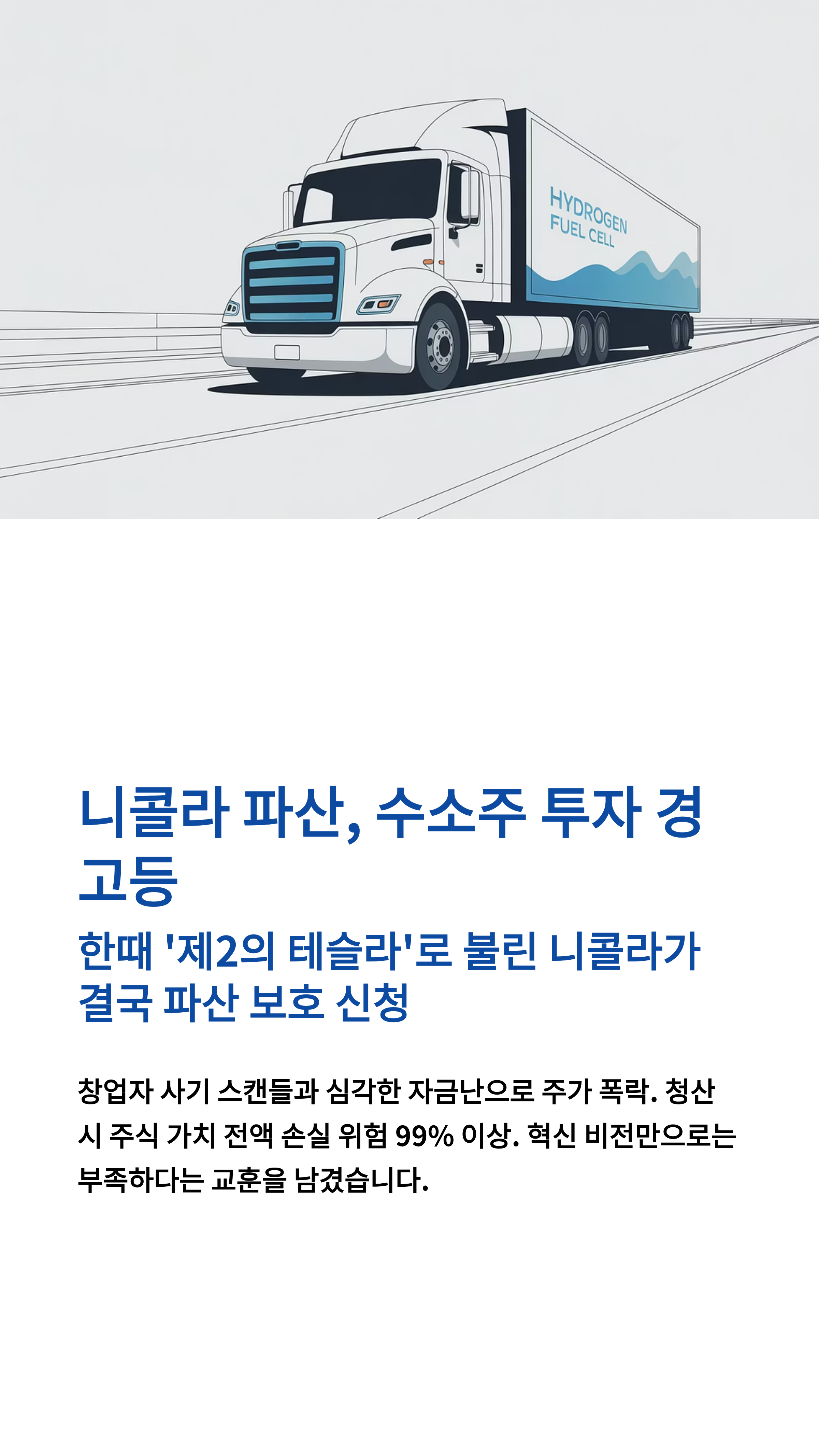 한때 시가총액이 300억 달러를 넘어서며 포드(Ford)를 추월하기도 했던 수소/전기 트럭 제조업체 **니콜라(Nikola)**가 2025년 2월, 델라웨어 법원에 **챕터 11 파산 보호**를 신청했습니다. 수소 경제의 미래를 이끌 대장주로 기대를 한 몸에 받았던 기업이었기에 많은 투자자가 충격과 실망감을 감추지 못했죠. 이 글에서는 니콜라의 몰락 과정을 되짚어보고, 이 사건이 미국 수소 관련주 시장에 미치는 영향을 분석하며, 현명한 투자 전략은 무엇인지 함께 고민해 보려 해요. 끝까지 읽어보시면 니콜라 사태의 핵심과 향후 수소차 시장의 전망을 이해하는 데 큰 도움이 될 거예요! 😊