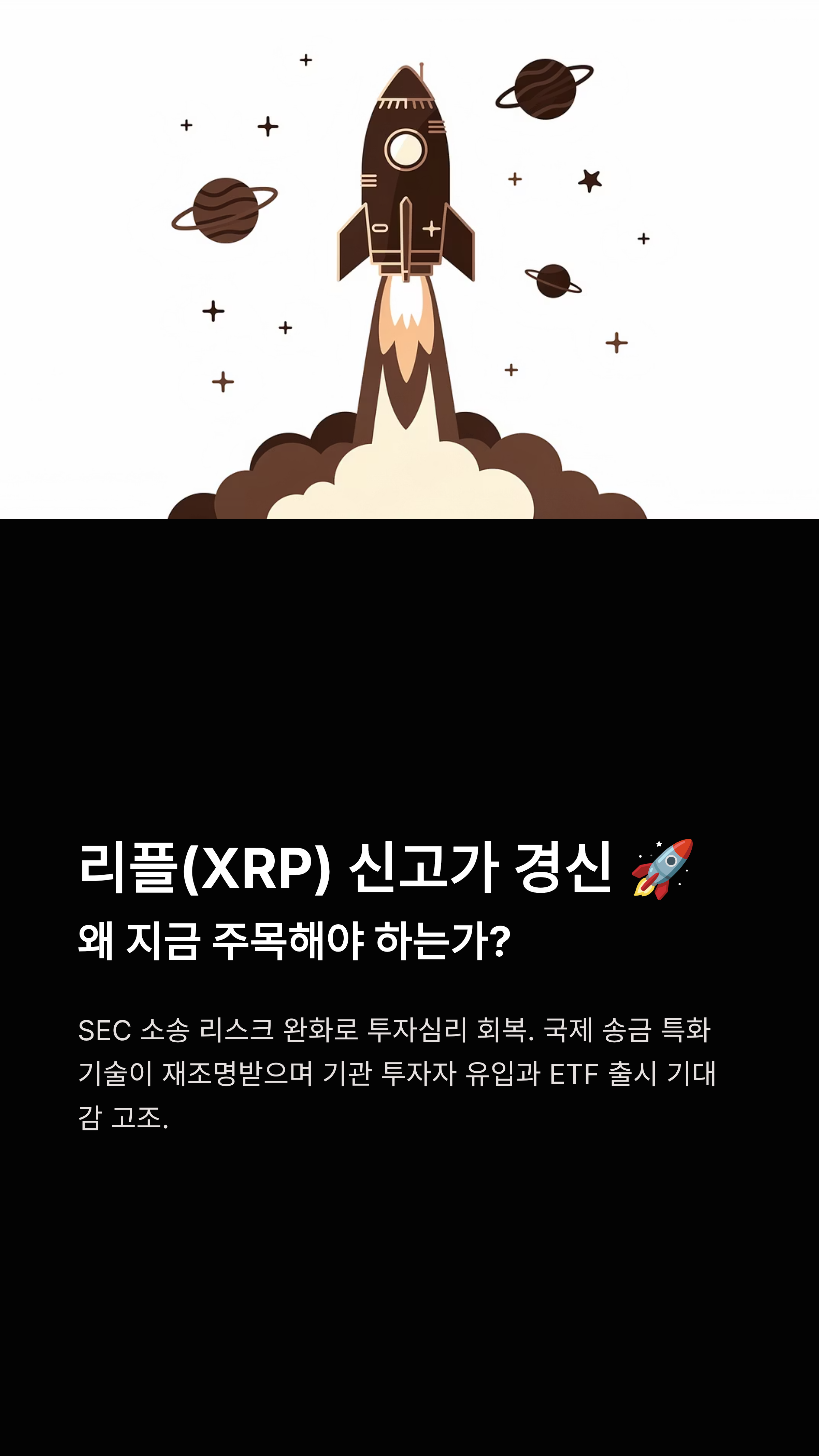 최근 리플은 연일 상승하며 신고가를 경신하는 기염을 토했습니다. 이는 단순히 시장의 분위기 때문만은 아니에요. 가장 큰 원동력은 역시 **미국 증권거래위원회(SEC)와의 소송 리스크 해소**에 대한 기대감입니다. 오랜 기간 리플의 발목을 잡았던 법적 불확실성이 걷히기 시작하면서, 억눌렸던 투자 심리가 한꺼번에 폭발한 것이죠.