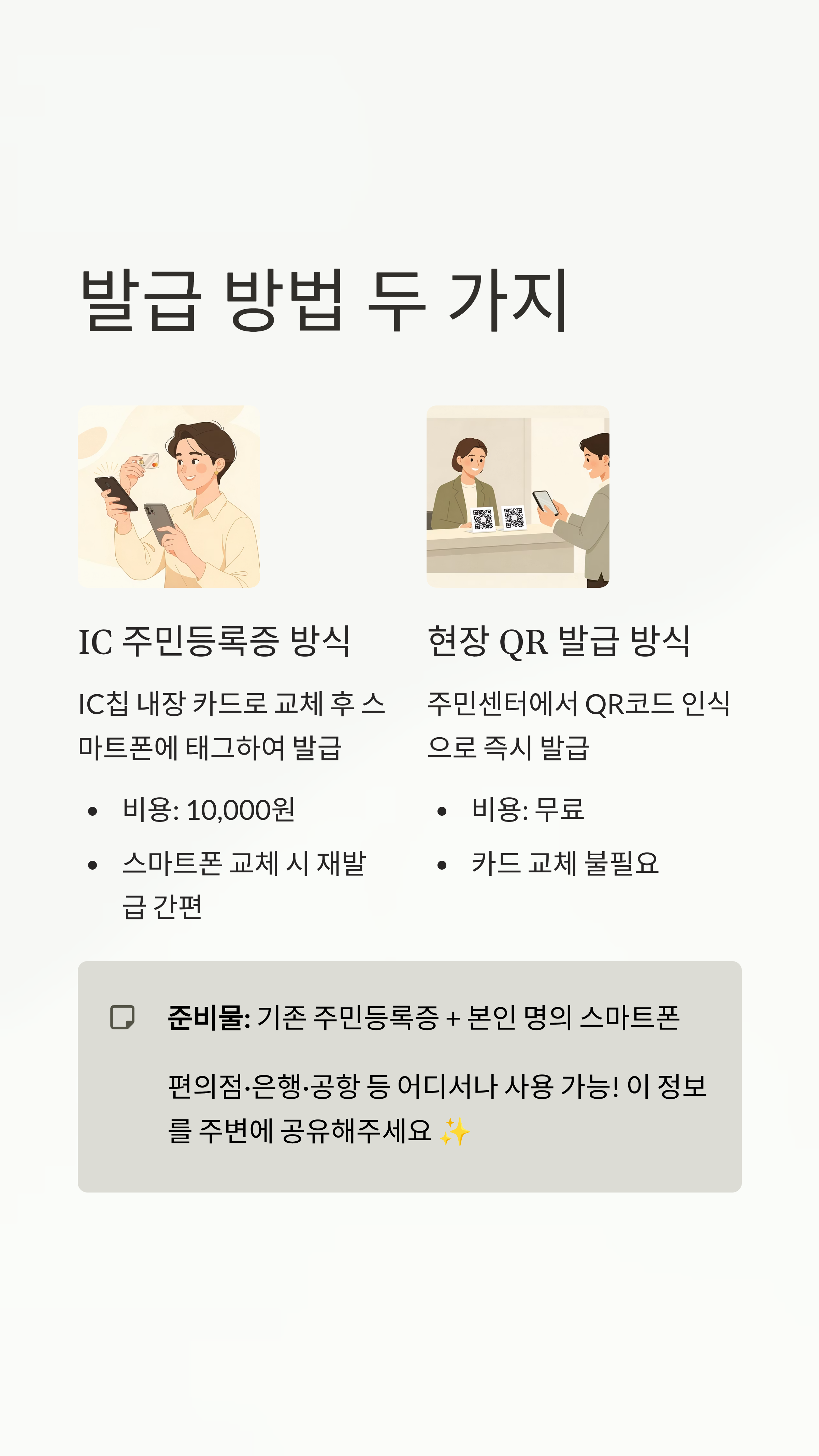 | 구분 | IC 주민등록증 | 현장 QR 발급 |