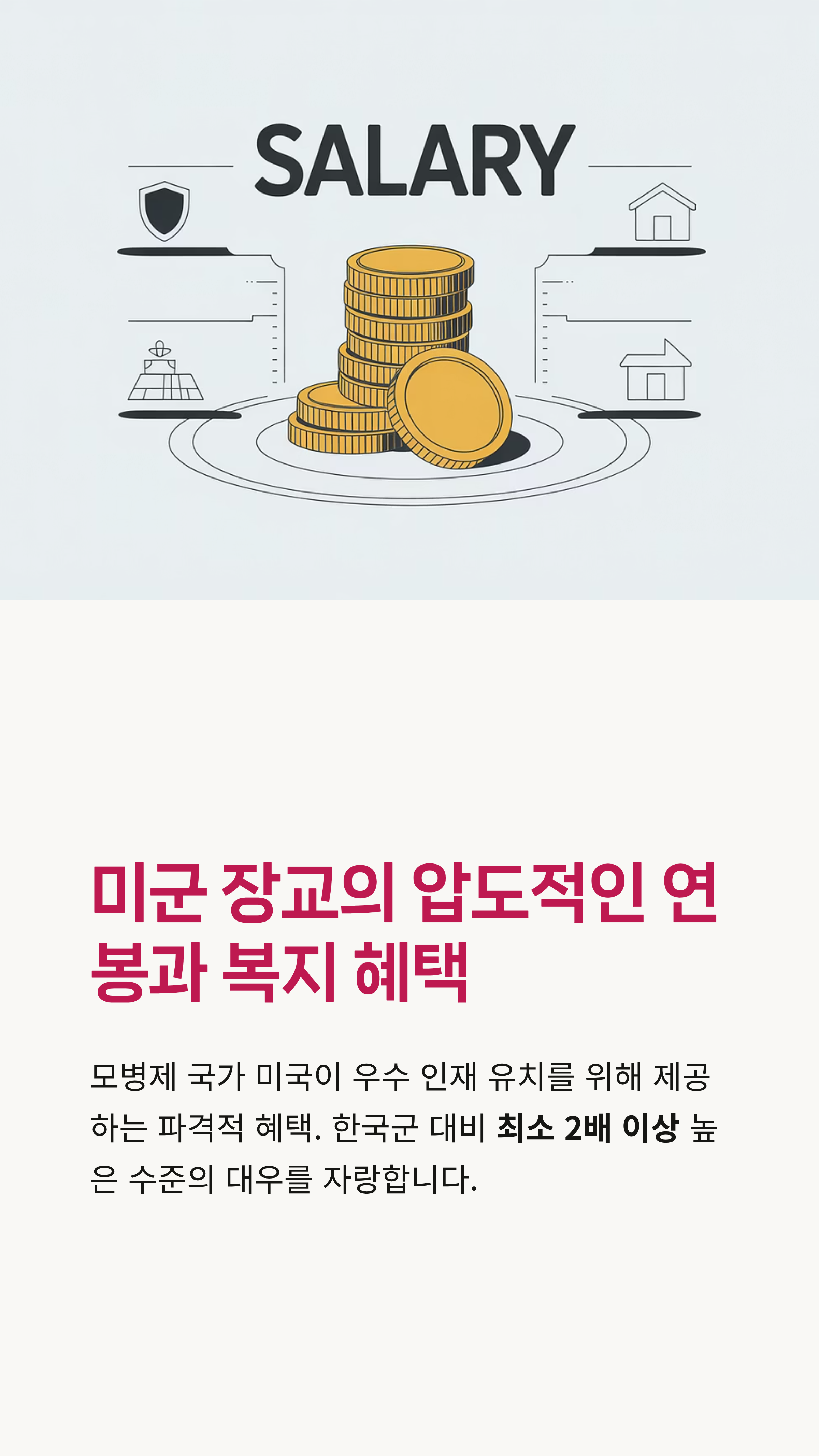 단순한 봉급을 넘어, 각종 수당과 빵빵한 복지 혜택까지! 미군 장교의 연봉은 단순히 기본급만으로 계산할 수 없는 복잡한 구조를 가지고 있답니다. 그래서 오늘은 여러분의 궁금증을 시원하게 해결해 드리기 위해 미군 장교의 계급별 월급부터 각종 수당, 그리고 '넘사벽'이라고 불리는 복지 혜택까지 전부 다 정리해 봤어요. 군인에 관심이 있거나 미국 유학, 이민을 고민하시는 분들에게도 정말 유용한 정보가 될 테니 끝까지 집중해 주세요!