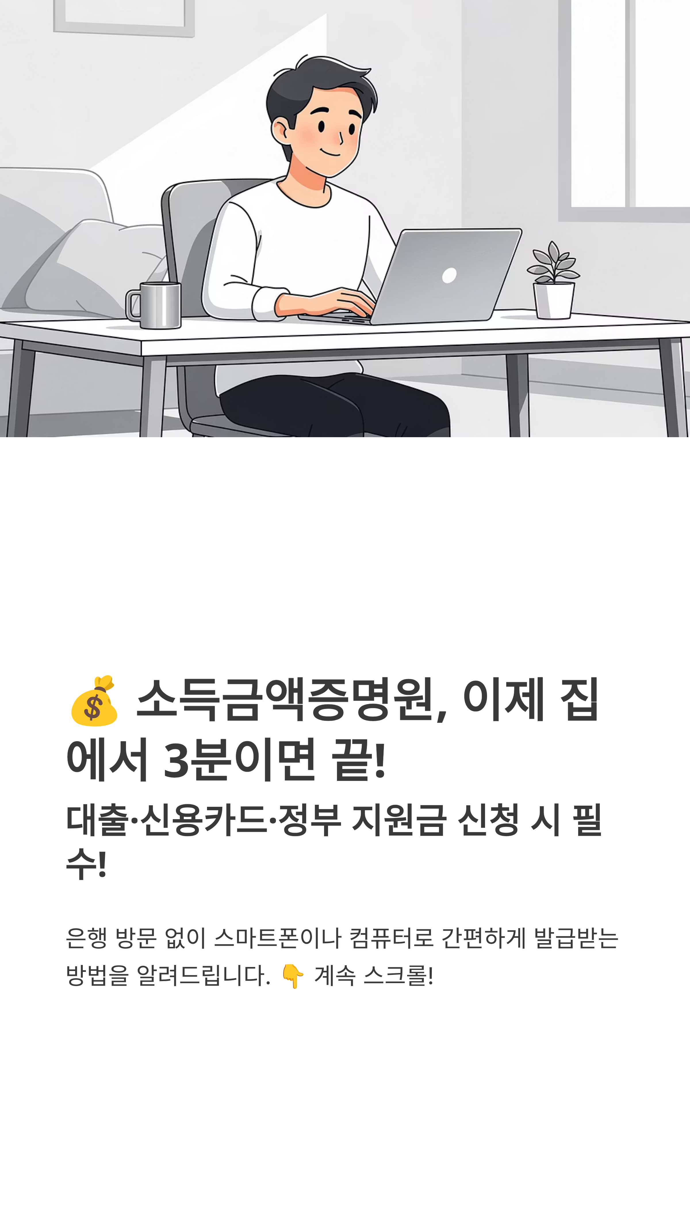 생각보다 정말 간단하죠? 이제 복잡한 서류 때문에 스트레스받지 마시고, 집에서 편하게 발급받으세요. 혹시 하시다가 막히는 부분이 있거나 궁금한 점이 있다면 언제든 댓글로 남겨주세요. 제가 아는 선에서 친절히 알려드릴게요! 여러분의 순탄한 경제생활을 응원합니다~ 😊