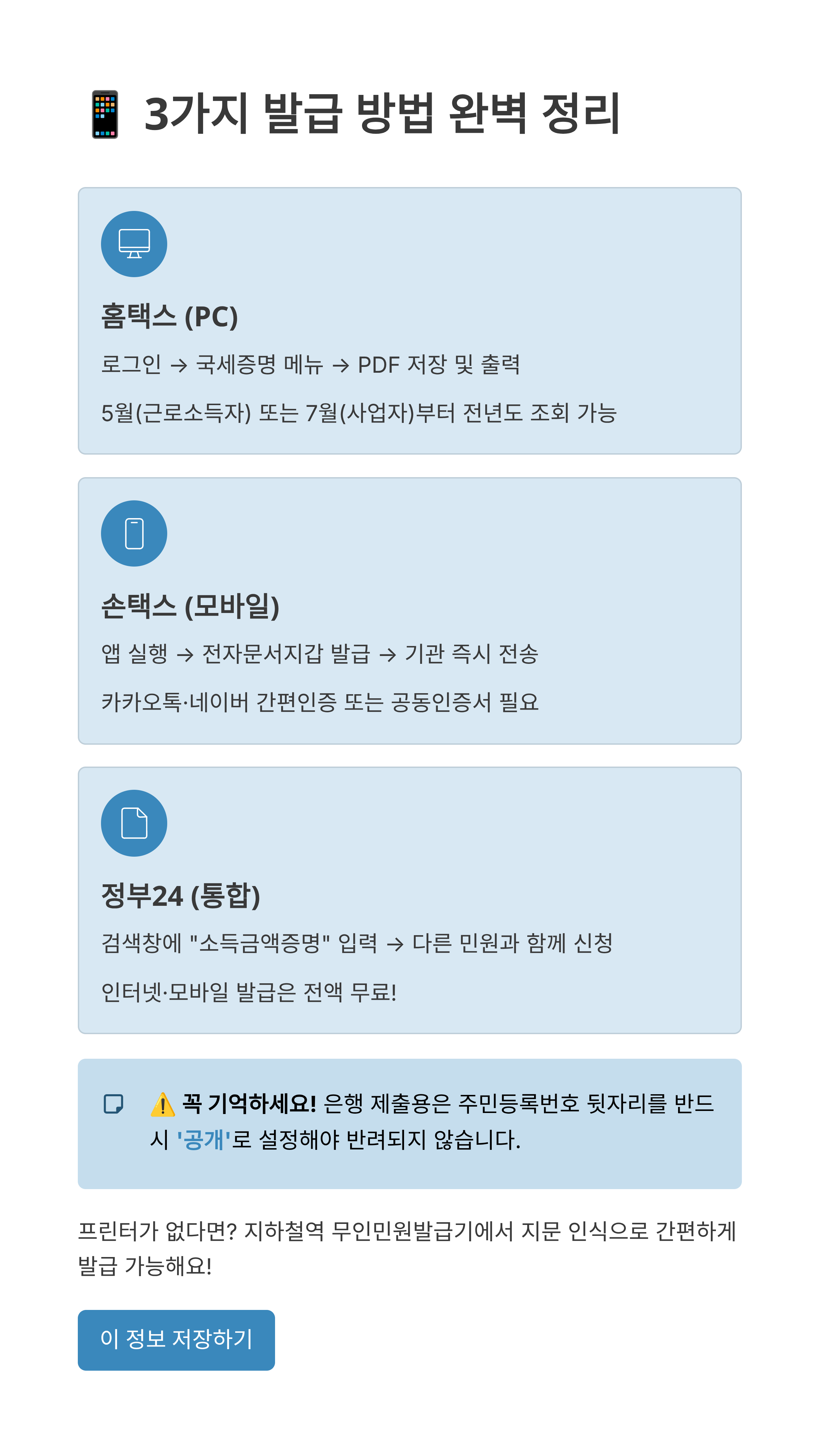 1. 발급처 선택: 홈택스(전문적), 정부24(통합 민원), 무인발급기(오프라인).