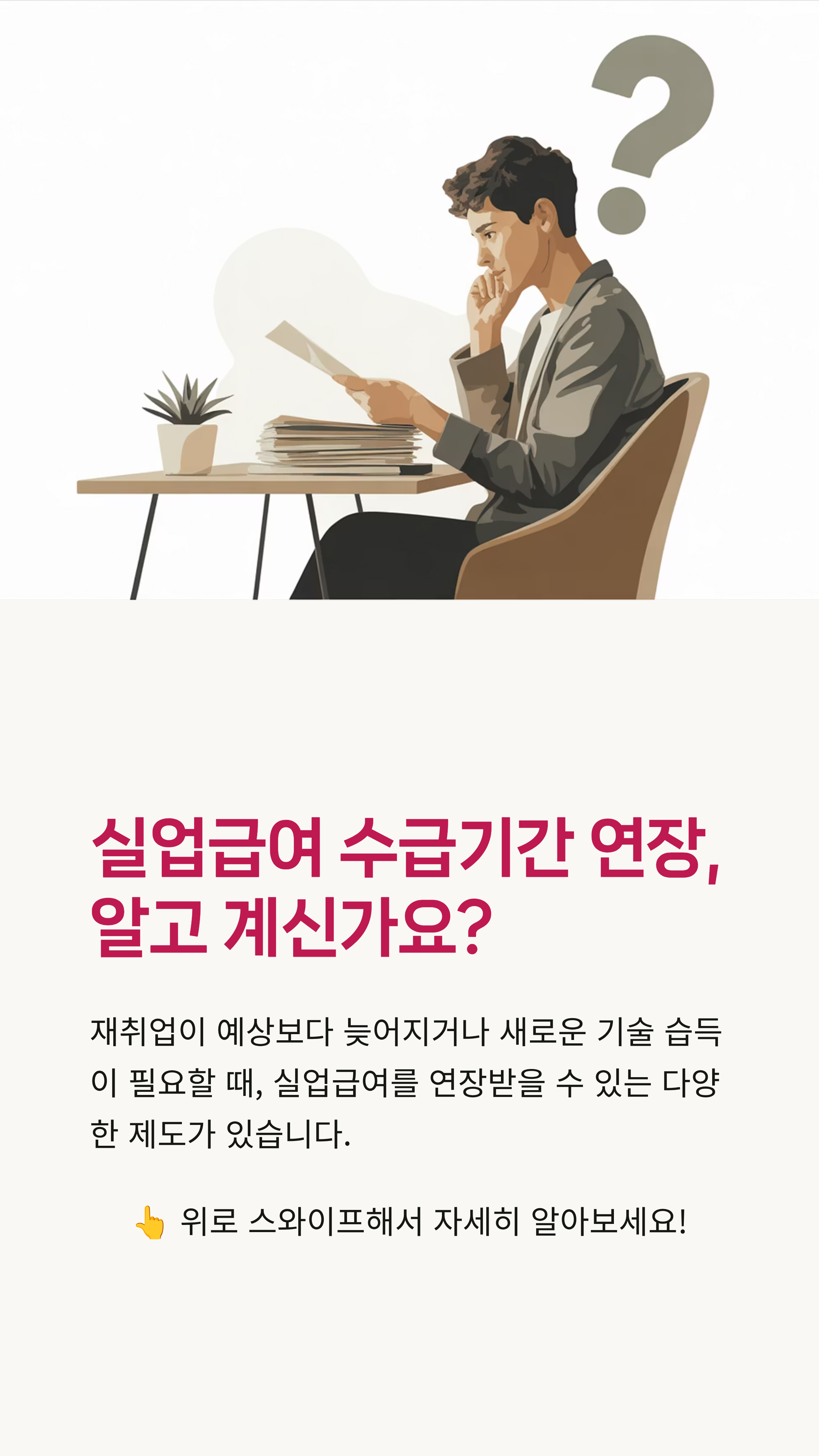 실업급여를 받고 계신 분이라면, 정해진 수급 기간이 끝나갈 때쯤 '이대로 괜찮을까?' 하는 불안감이 드는 건 당연한 일이죠. 저도 예전에 비슷한 경험을 했었거든요. 특히 예상보다 재취업이 늦어지거나, 새로운 기술을 배우기 위해 시간이 더 필요한 상황이라면 정말 막막하게 느껴질 거예요.