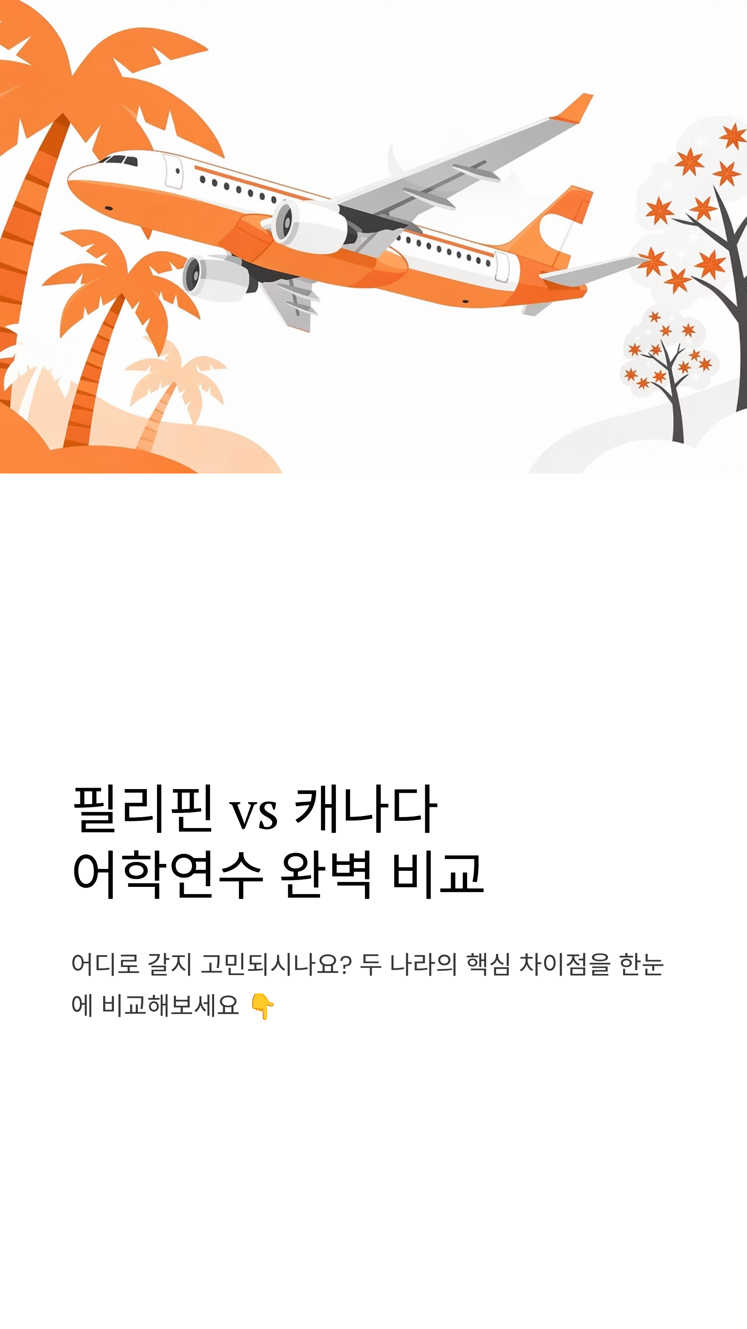 대표적으로 '단기 속성'의 대명사 필리핀과 '정통 영어와 이민'까지 고려하는 캐나다가 늘 비교 대상인데요. 각 나라의 장단점이 워낙 뚜렷해서 본인의 목적을 잘 파악하는 게 중요해요. 오늘 제가 이 두 나라를 낱낱이 파헤쳐 드릴 테니, 이 글만 읽으셔도 결정이 훨씬 쉬워지실 거예요! 😊