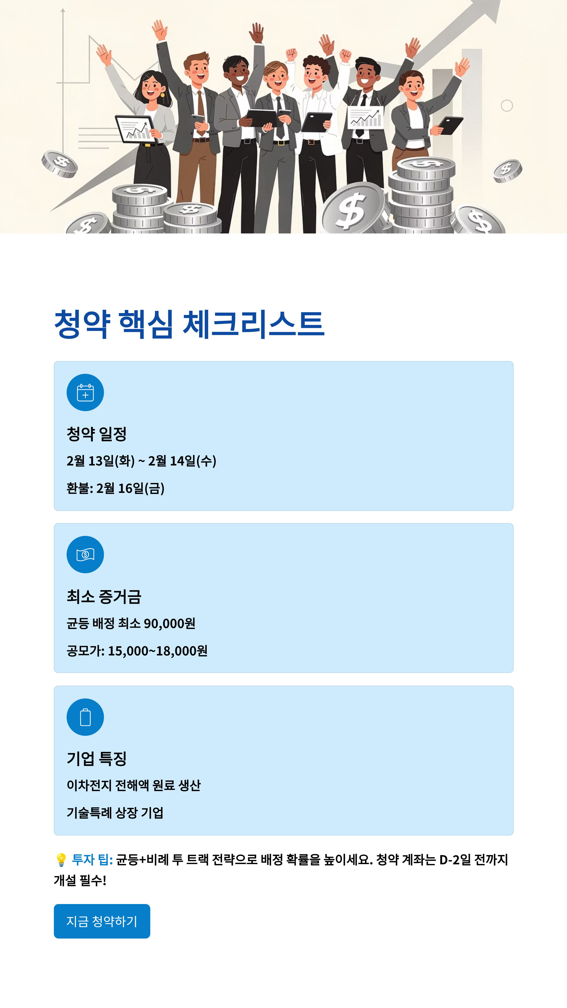 - **청약일 확인.** 2월 13일(화)부터 14일(수)까지 단 이틀입니다. 시간을 놓치지 마세요.