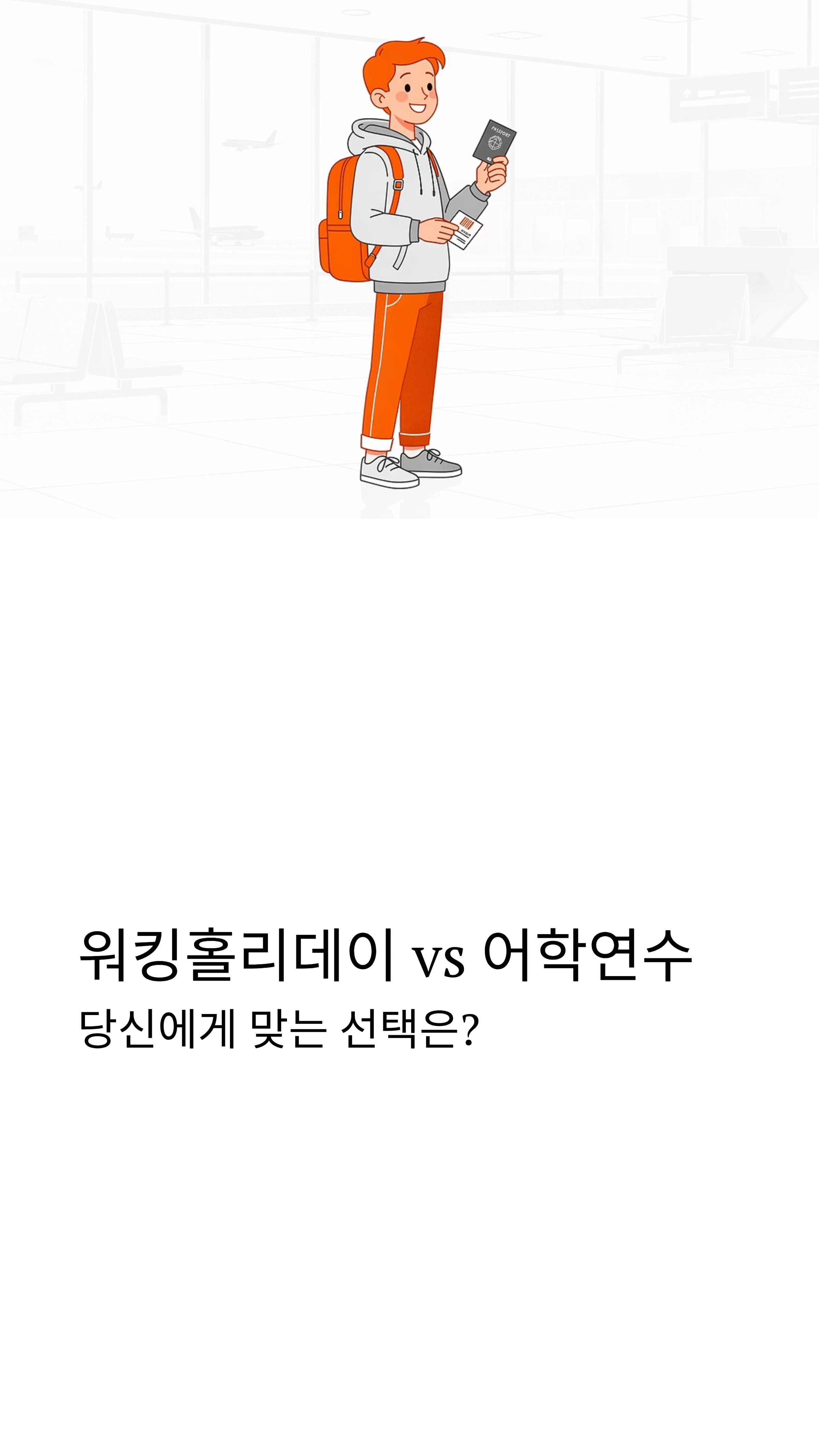 해외 생활, 워홀이 답일까 어학연수가 답일까? 인생의 터닝포인트를 꿈꾸며 해외로 떠나고 싶지만, 워킹홀리데이와 어학연수 사이에서 갈팡질팡하고 계신가요? 비용부터 목적, 준비 방법까지 두 제도의 차이점을 아주 쉽게 파헤쳐 드립니다. 나에게 꼭 맞는 선택지는 무엇인지 지금 바로 확인해보세요!