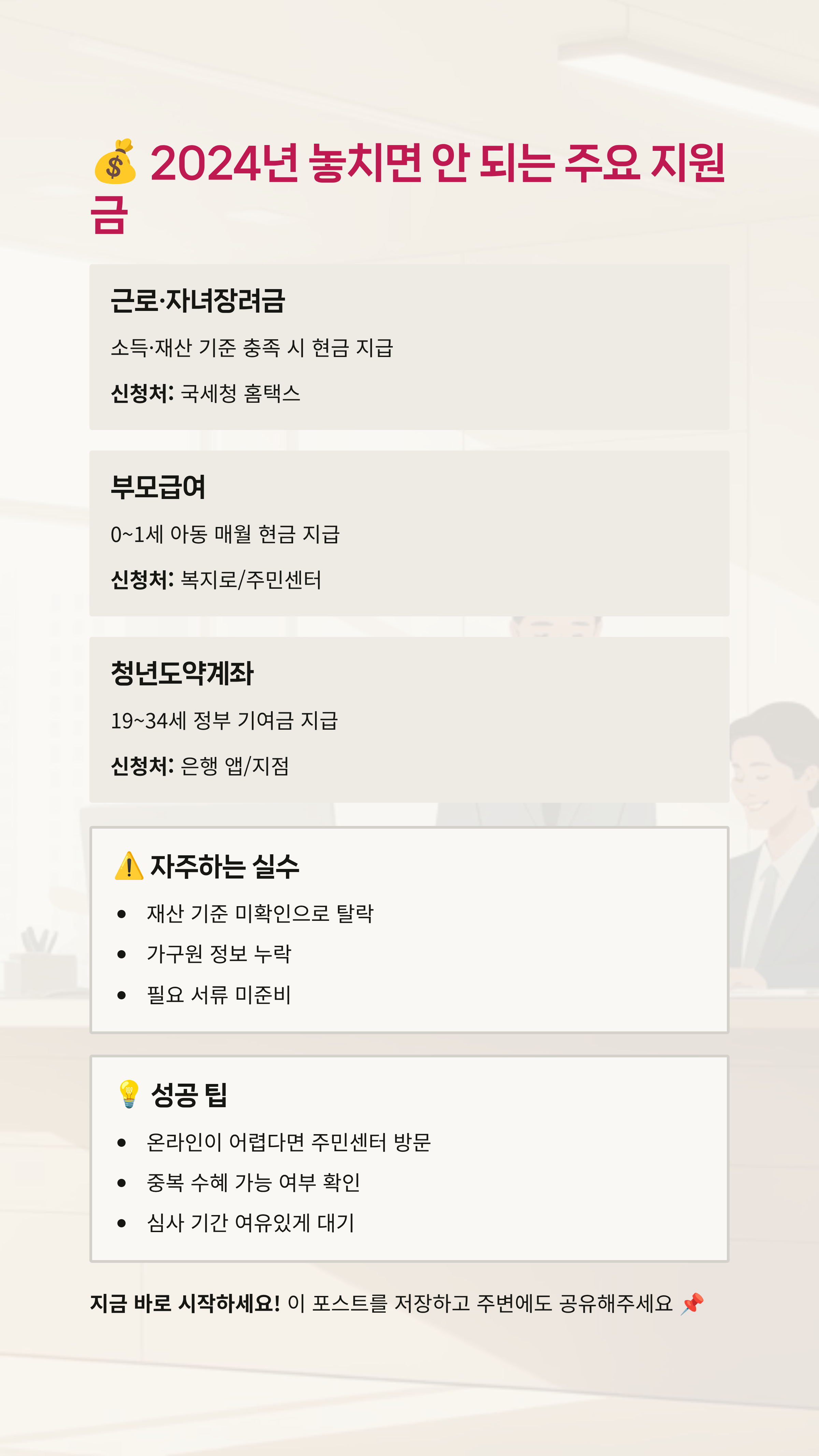 2024년 주요 정부지원금 종류와 핵심 조건 🧮