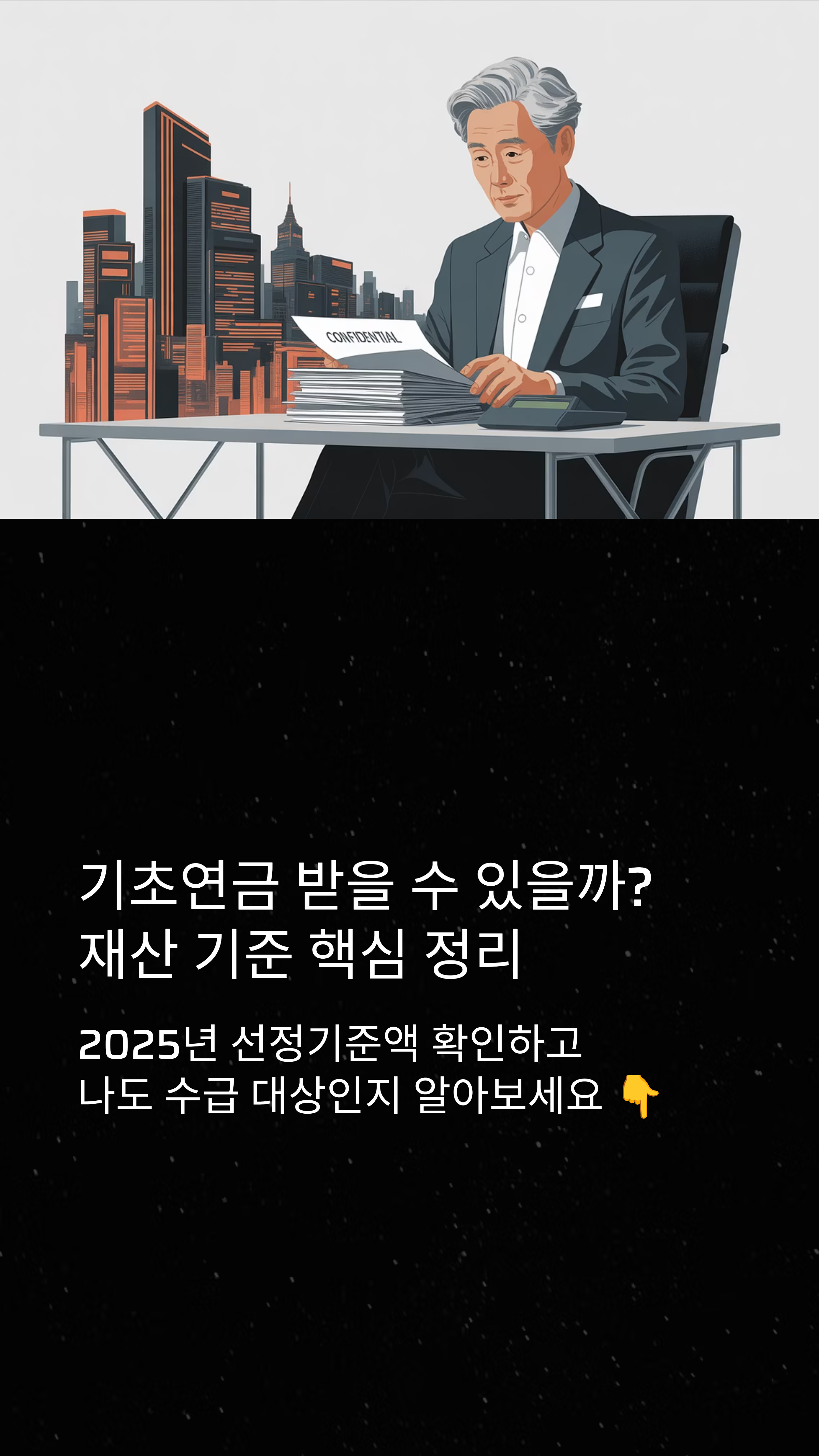 하지만 걱정 마세요! 기초연금 수급자격은 단순한 '재산 금액'으로 결정되는 게 아니라, 소득과 재산을 월 소득으로 환산한 '소득 인정액'을 기준으로 하거든요. 게다가 재산 산정 시 지역별 '기본재산액'을 공제해 주기 때문에, 생각보다 훨씬 많은 분들이 혜택을 받으실 수 있습니다. 이 글을 끝까지 읽으시면, 2025년 최신 기준으로 '내가 받을 수 있는지' 명쾌하게 답을 찾으실 수 있을 거예요! 😊