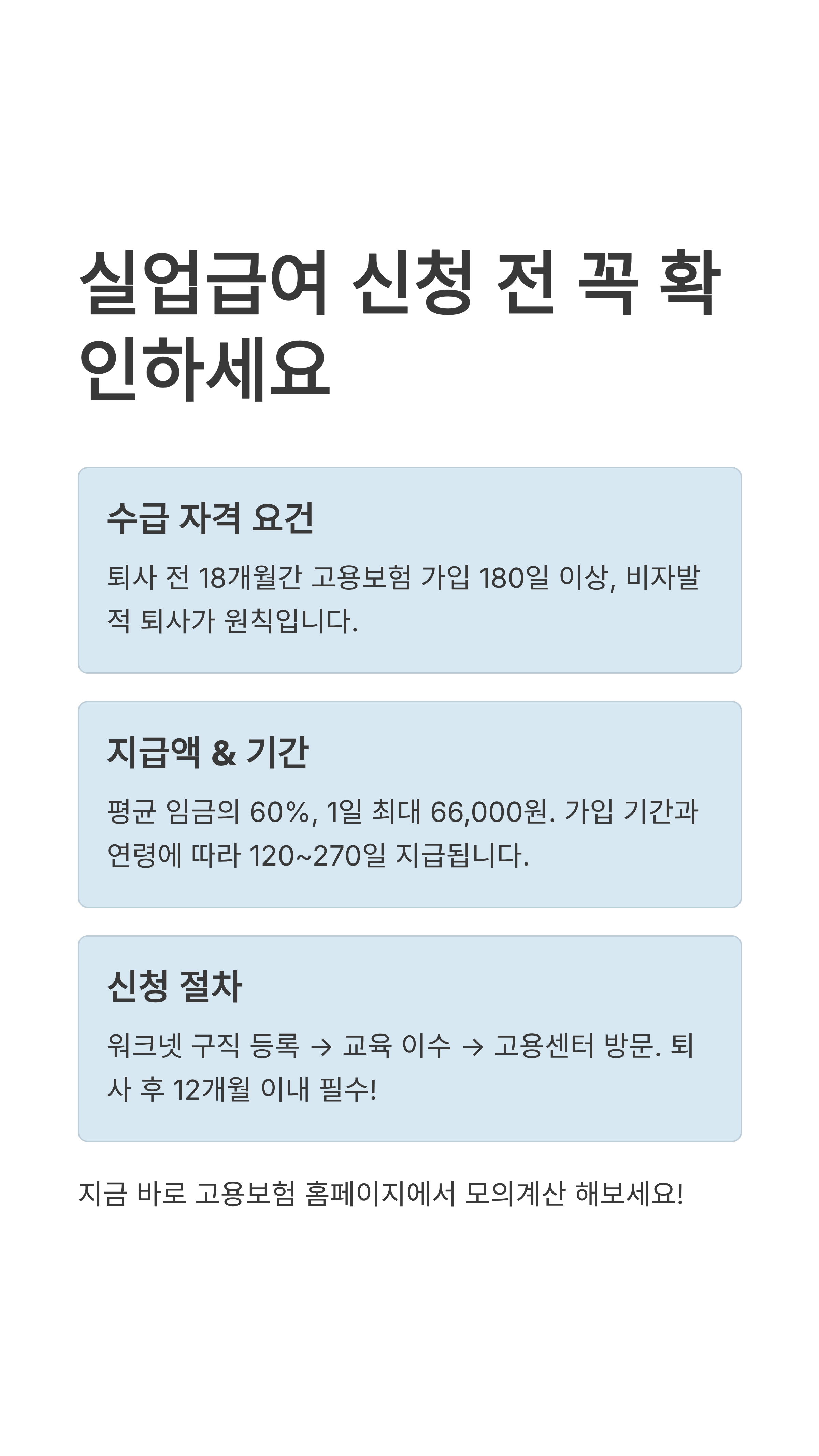 오늘 알아본 2025년 실업급여 조건을 세 줄로 요약해 볼까요?