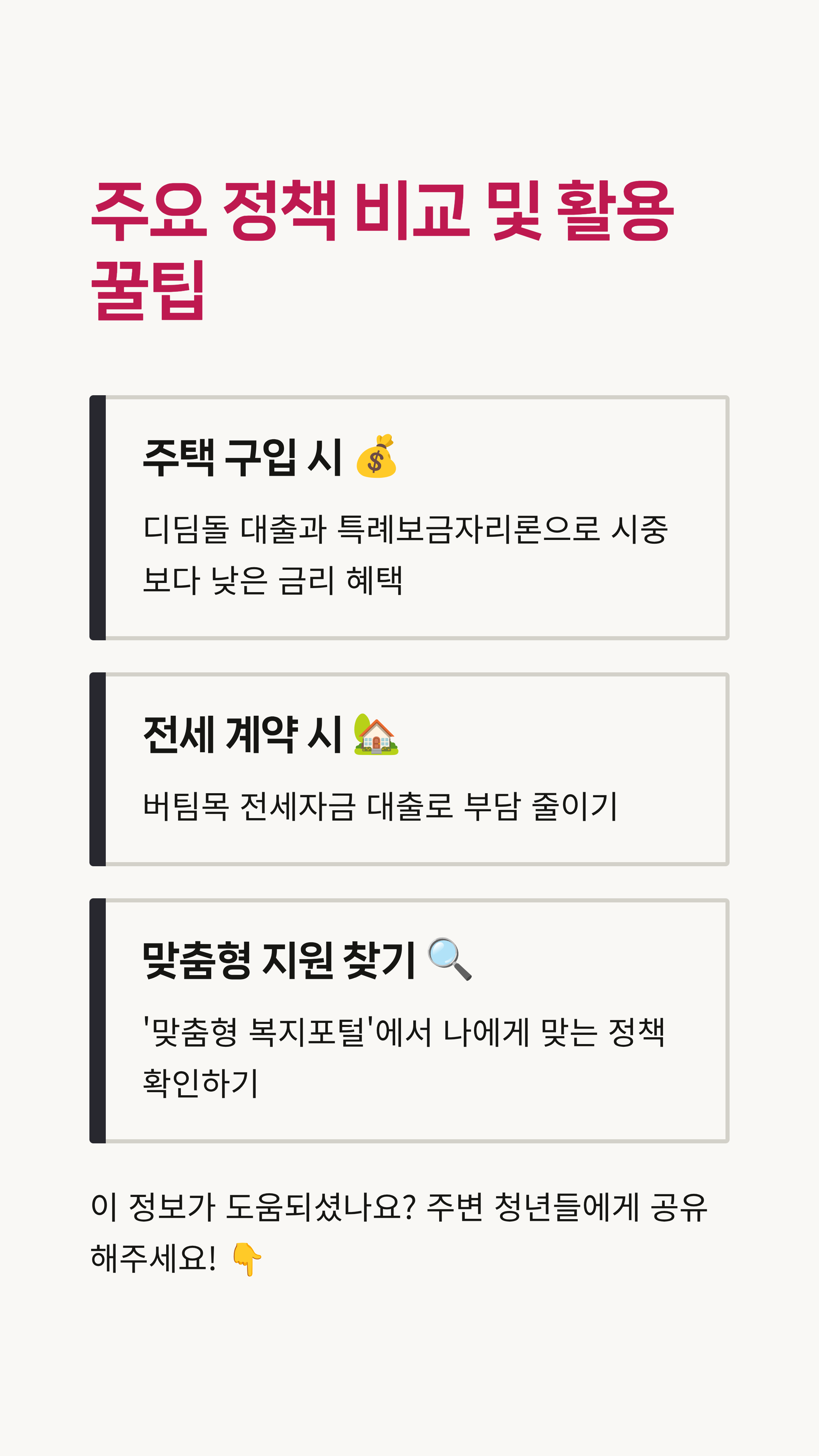 정부 정책은 매년, 그리고 필요에 따라 수시로 변해요. 오늘 알려드린 정보가 여러분의 미래를 계획하는 데 조금이나마 도움이 되었기를 바라요. 혹시 궁금한 점이 있다면 언제든지 댓글로 남겨주세요! 제가 아는 선에서 성심껏 답변해 드릴게요! 😉