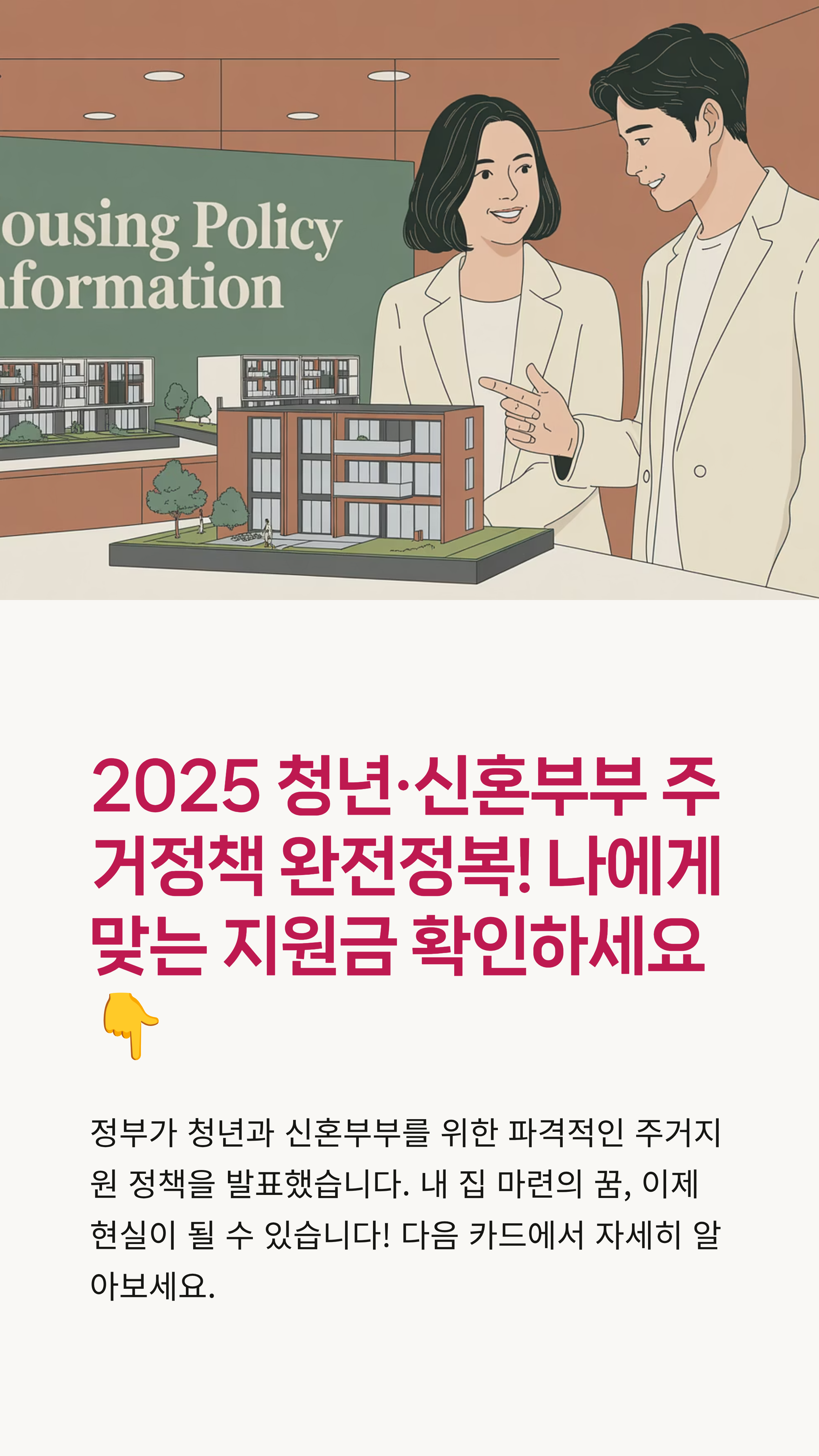 2025년 정부가 새롭게 선보이는 청년, 신혼부부 주거 지원 정책들을 한눈에 총정리해 드립니다. 복잡한 정책 용어는 쉽게 풀어내고, 나에게 꼭 맞는 지원 제도를 찾아보는 방법까지 상세히 알려드릴게요!