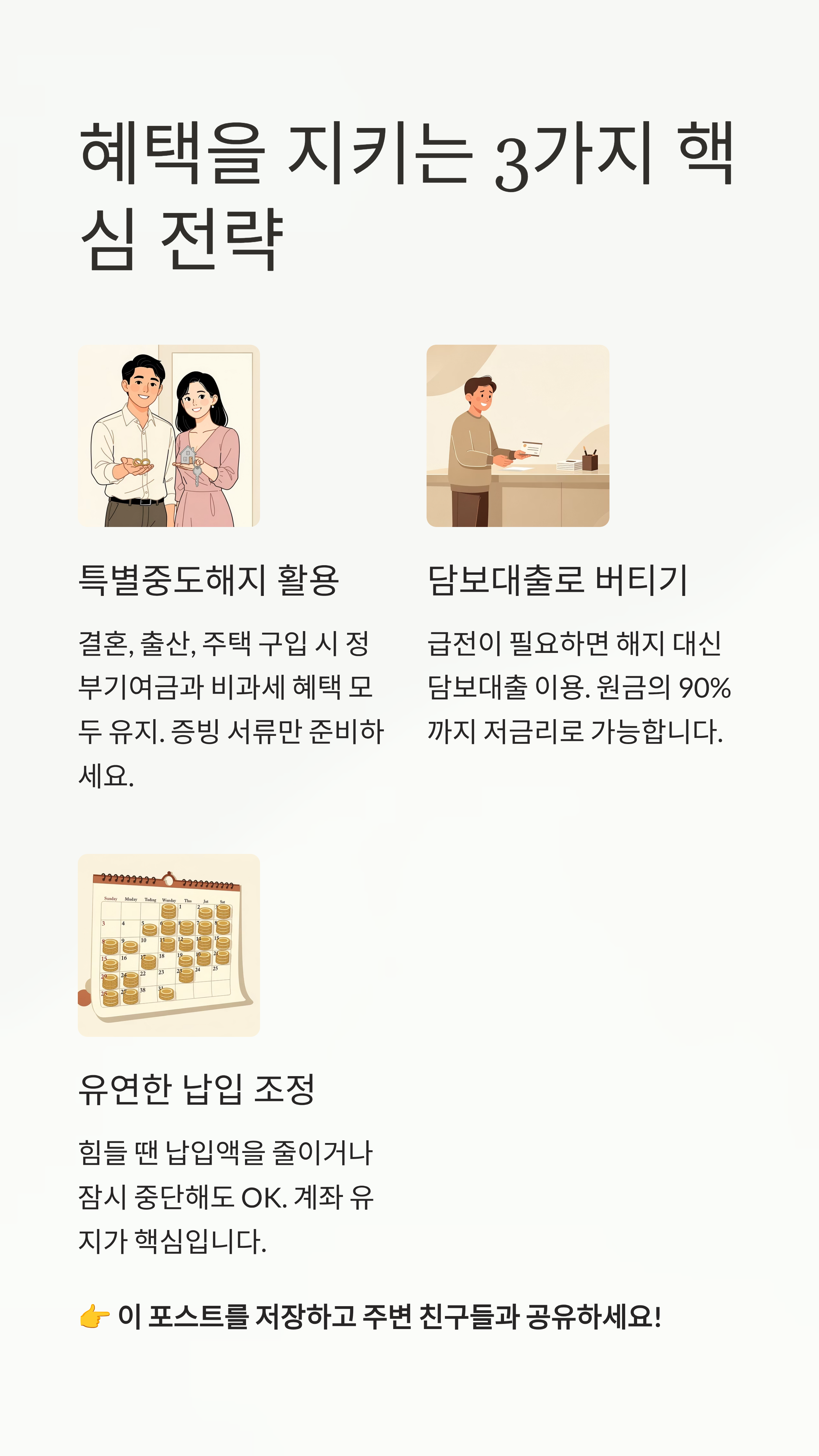 - 특별사유를 확인하세요. 결혼, 출산, 주택구입 등은 해지해도 혜택이 유지됩니다.