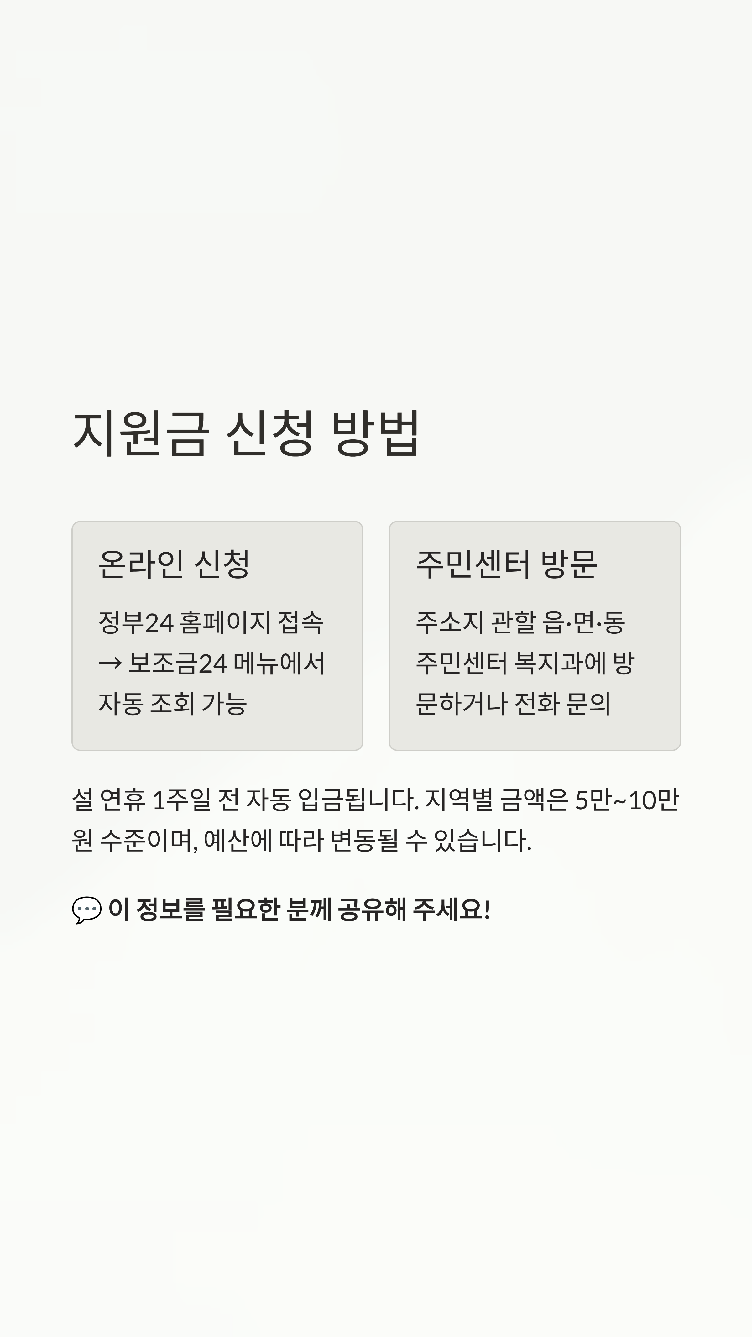 설 명절 지원금 핵심 요약