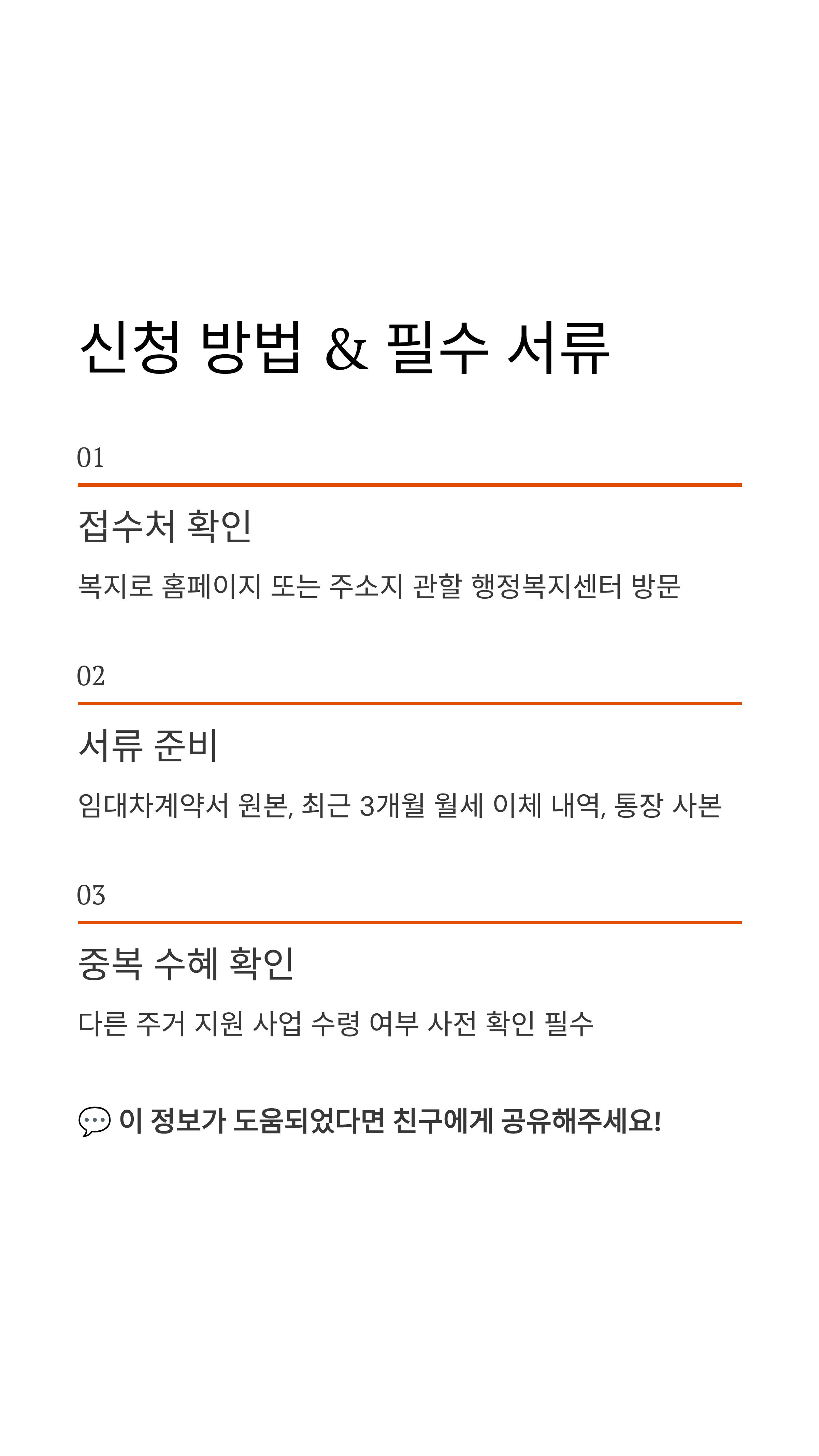 - 신청은 '복지로' 또는 주소지 관할 주민센터. 온라인이 훨씬 편해요!