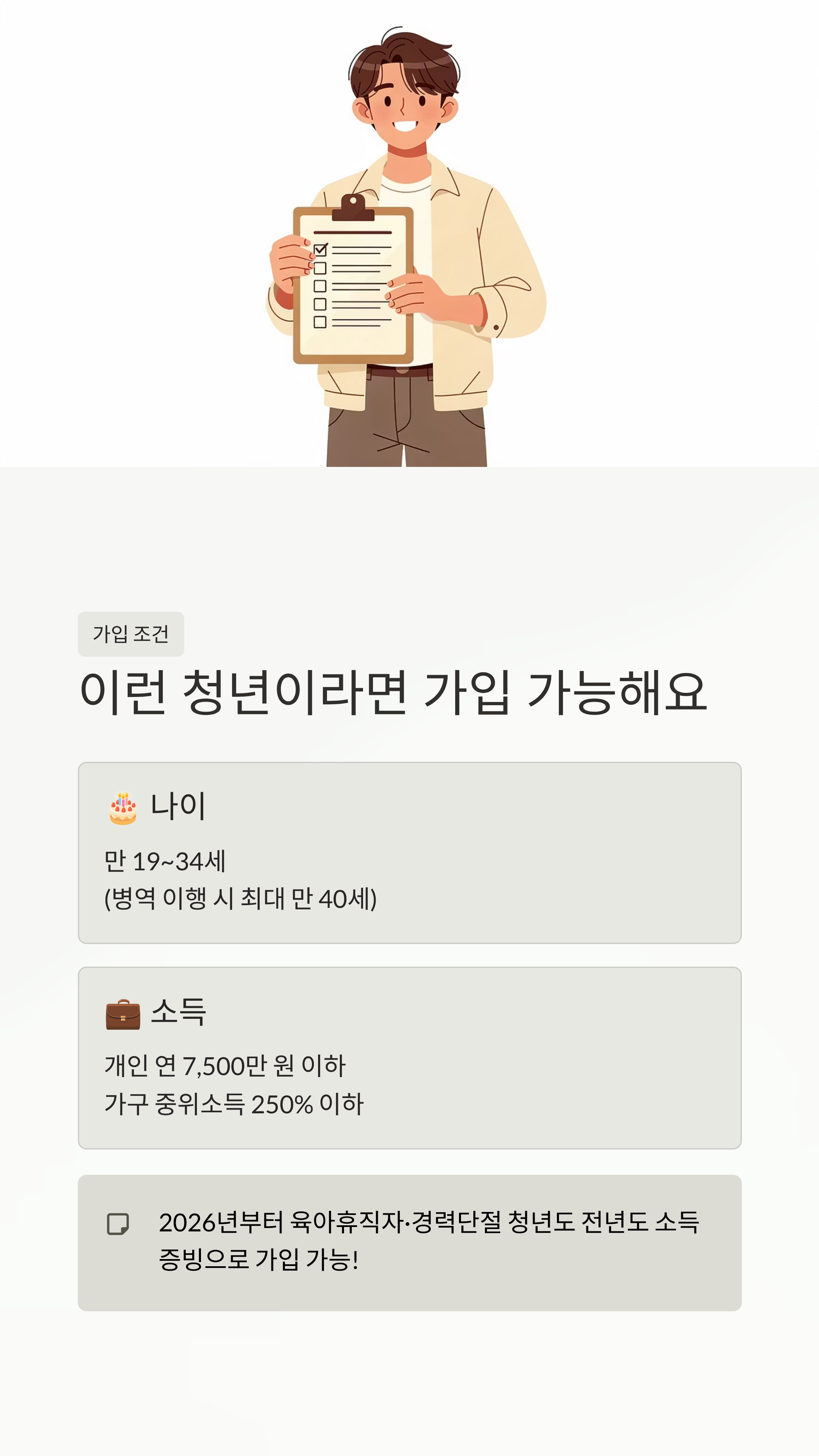 2026년부터는 육아휴직자나 일시적인 경력 단절 청년들도 가입할 수 있도록 소득 증빙 방식이 더 유연해졌습니다. 소득이 없다고 무조건 포기하지 마시고, 전년도 비과세 소득 등을 꼭 확인해 보세요.