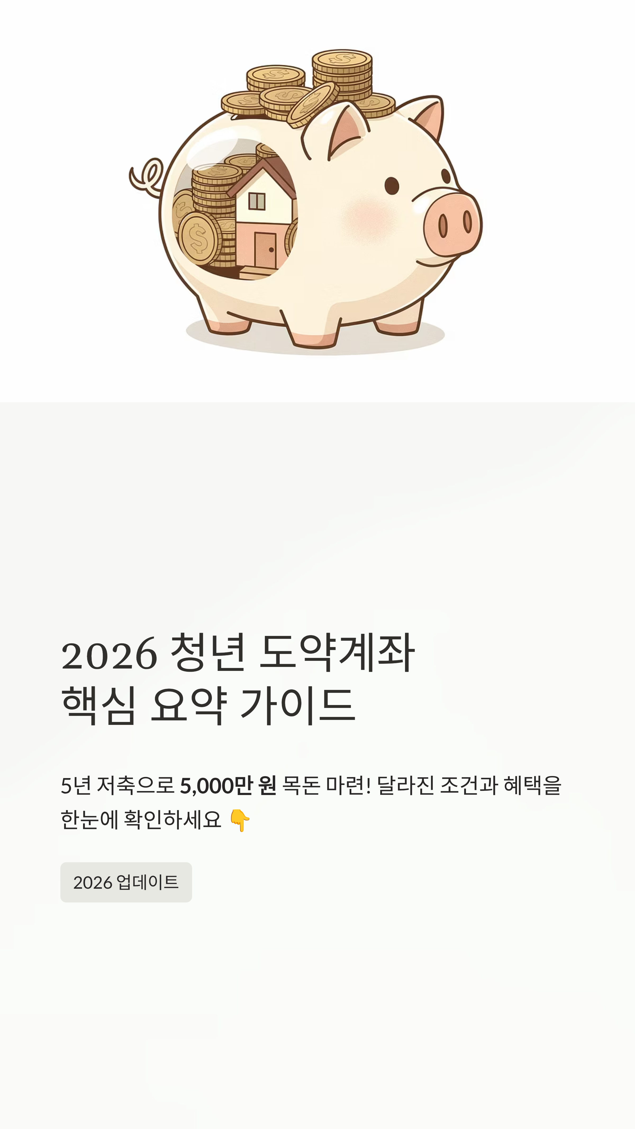 2026년 한 해, 경제적으로 더 단단해지는 여러분이 되기를 진심으로 응원합니다! 혹시 가입 과정에서 헷갈리는 점이나 본인의 소득 조건에 대해 궁금한 점이 있다면 언제든 댓글로 남겨주세요. 제가 아는 선에서 최대한 친절하게 답변드릴게요~ 우리 같이 부자 되어봐요! 😊