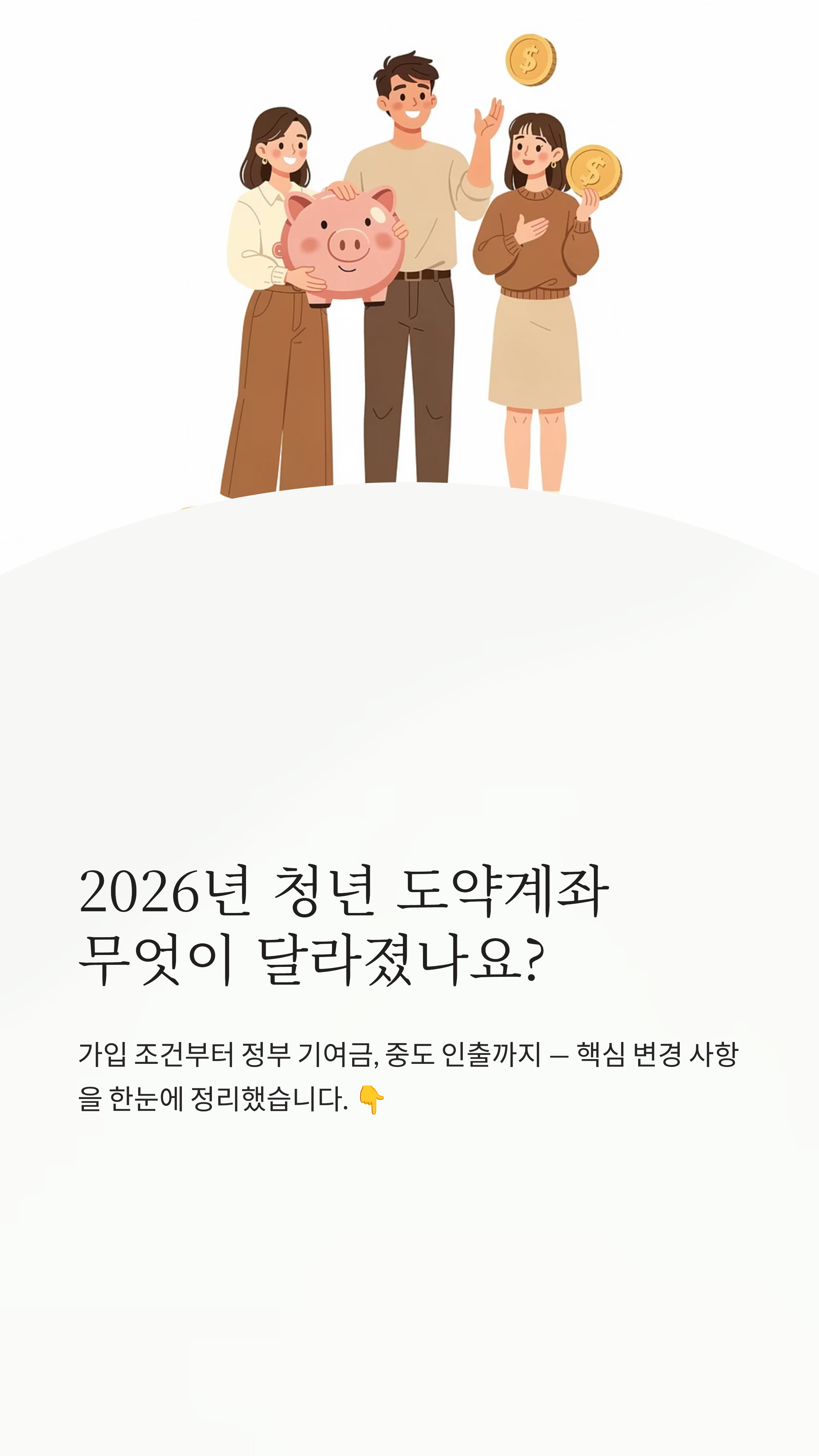 특히 정부에서 지원하는 '청년 도약계좌'는 혜택은 좋지만 5년이라는 기간이 너무 길어서 '중간에 깨면 어떡하지?'라는 걱정 때문에 시작조차 못 하는 분들이 많았거든요. 그런데 2026년 들어서 정부가 이런 가입자들의 목소리를 적극 반영해 아주 파격적인 보완책을 내놓았답니다. 오늘 글을 끝까지 읽으시면, 내가 대상자인지 그리고 어떻게 해야 가장 똑똑하게 돈을 모을 수 있는지 확실히 알게 되실 거예요! 🚀