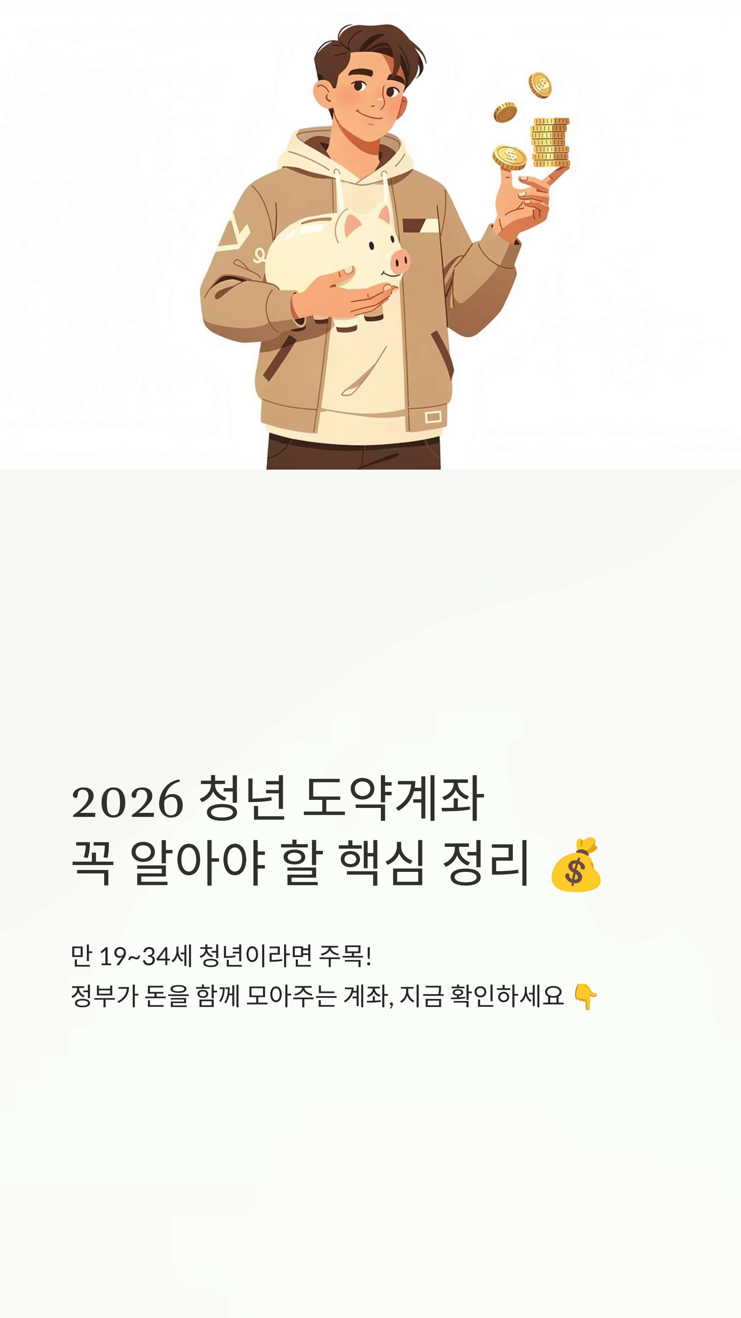 단순히 은행 이자만 받는 게 아니라, 정부가 직접 지원금을 보태주고 비과세 혜택까지 주는 상품이라 사실 안 하면 손해라는 말이 나올 정도거든요. 이번 포스팅을 통해 내가 대상인지, 얼마나 받을 수 있는지 확실히 확인해 보세요! 끝까지 읽어보시면 목돈 마련의 청사진이 그려지실 거예요. ✨