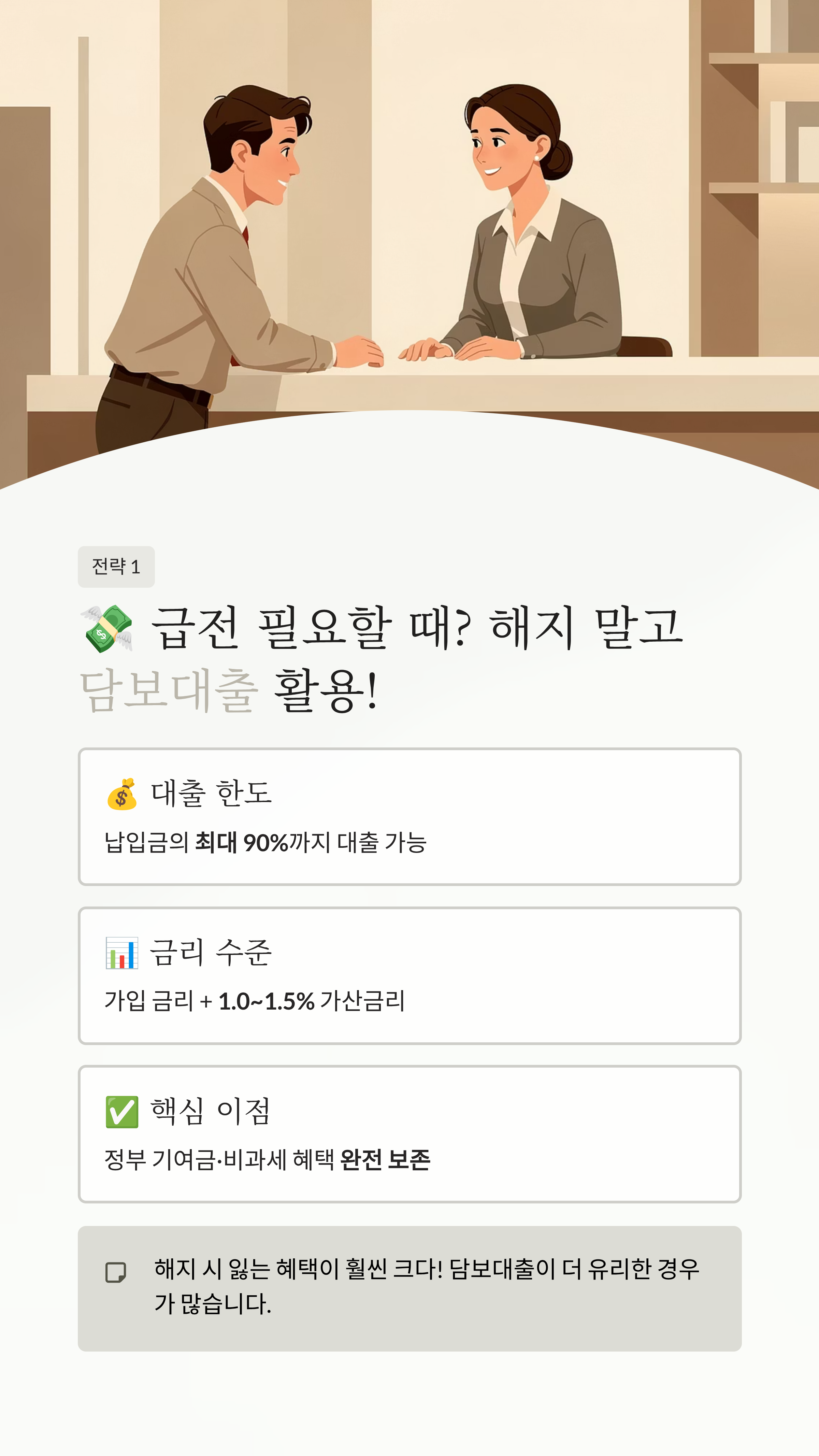 ✨ 유지 전략: 담보대출(90% 한도)을 활용해 계좌를 유지하고 만기 혜택을 챙기세요.