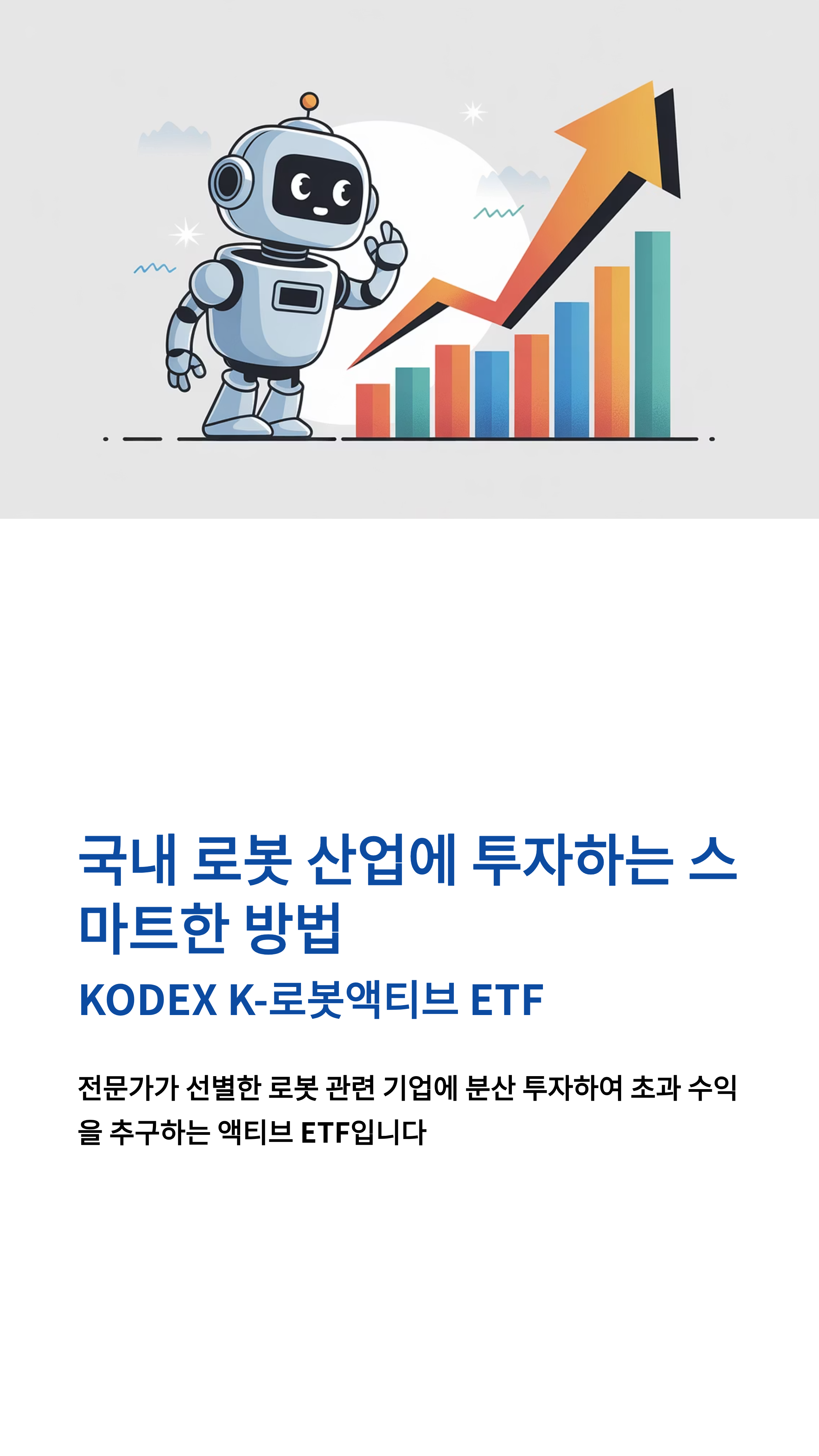 추가 설명이 필요하다면 이어서 작성합니다. 이 ETF는 한국거래소에서 발표하는 'K-로봇테마 지수'를 비교 지표로 삼지만, 운용팀의 재량으로 지수와 다르게 포트폴리오를 구성할 수 있어요. 독자가 쉽게 이해할 수 있도록 전문 용어는 가능한 쉽게 풀어 설명하세요. 그러니까 투자자가 일일이 유망 로봇 기업을 찾지 않아도, 전문가가 알아서 '잘 나갈 것 같은' 로봇 주식들을 엄선해서 담아주는 펀드라고 이해하시면 돼요. 정말 편리하죠?