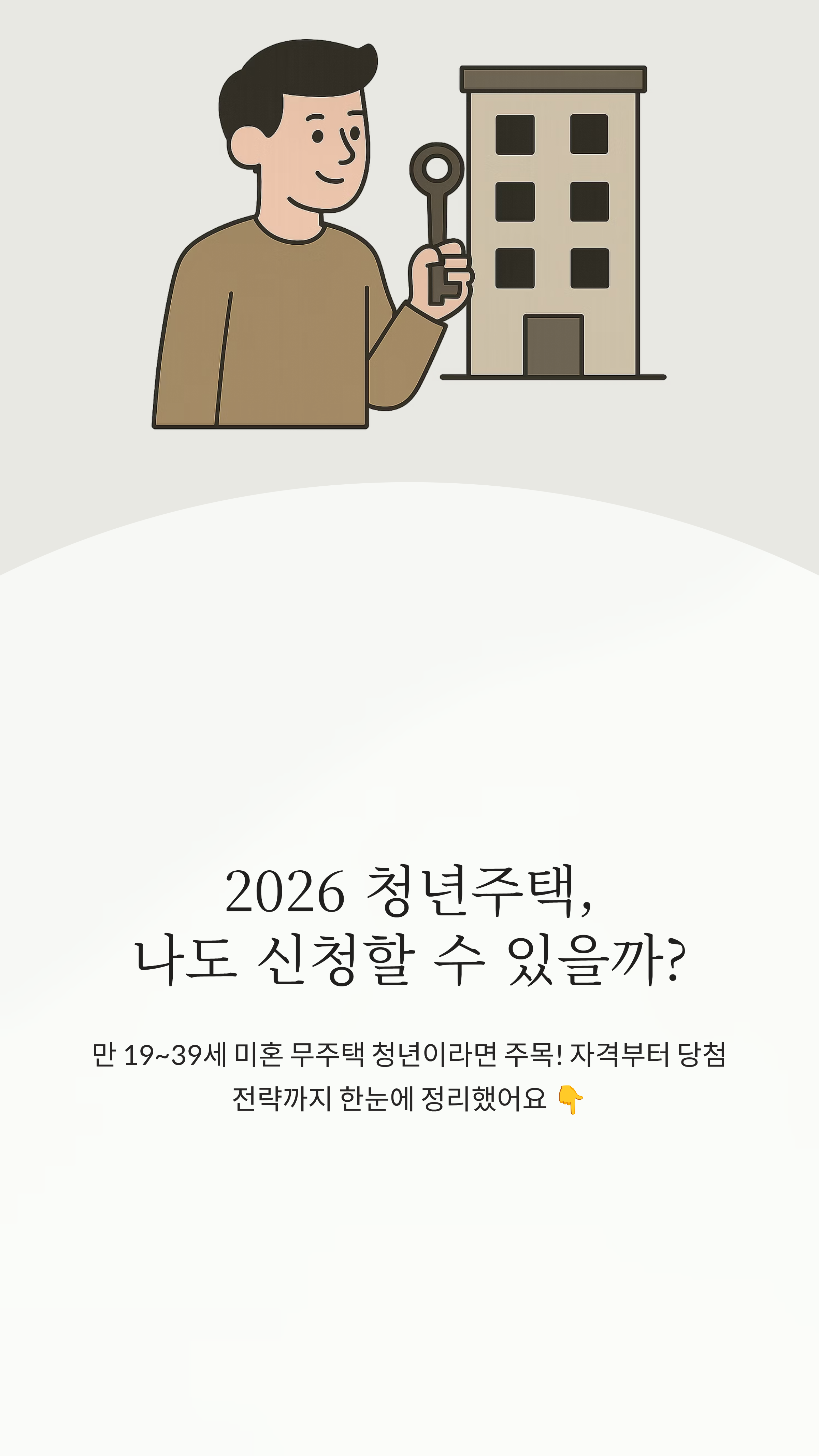 요즘 월세가 정말 무섭게 오르고 있죠? 숨만 쉬어도 나가는 주거비 때문에 저축은커녕 하루하루 버티기도 힘들다는 분들이 참 많으시더라고요. 저도 사회초년생 시절에는 좁은 고시원과 원룸을 전전하며 '언제쯤 내 맘 편히 쉴 수 있는 집을 가질 수 있을까' 고민을 정말 많이 했거든요. 이런 고민을 해결해 주기 위해 정부에서 운영하는 청년주택 제도가 있지만, 막상 신청하려고 보면 용어도 어렵고 조건은 왜 이렇게 복잡한지... ㅠㅠ 그래서 제가 오늘은 여러분의 시간을 아껴드리기 위해 청년주택 입주 조건을 아주 쉽게 풀어서 설명해 드리려고 해요. 이 글을 끝까지 읽으시면 내가 입주 가능한지, 무엇을 준비해야 하는지 완벽하게 파악하실 수 있을 거예요!