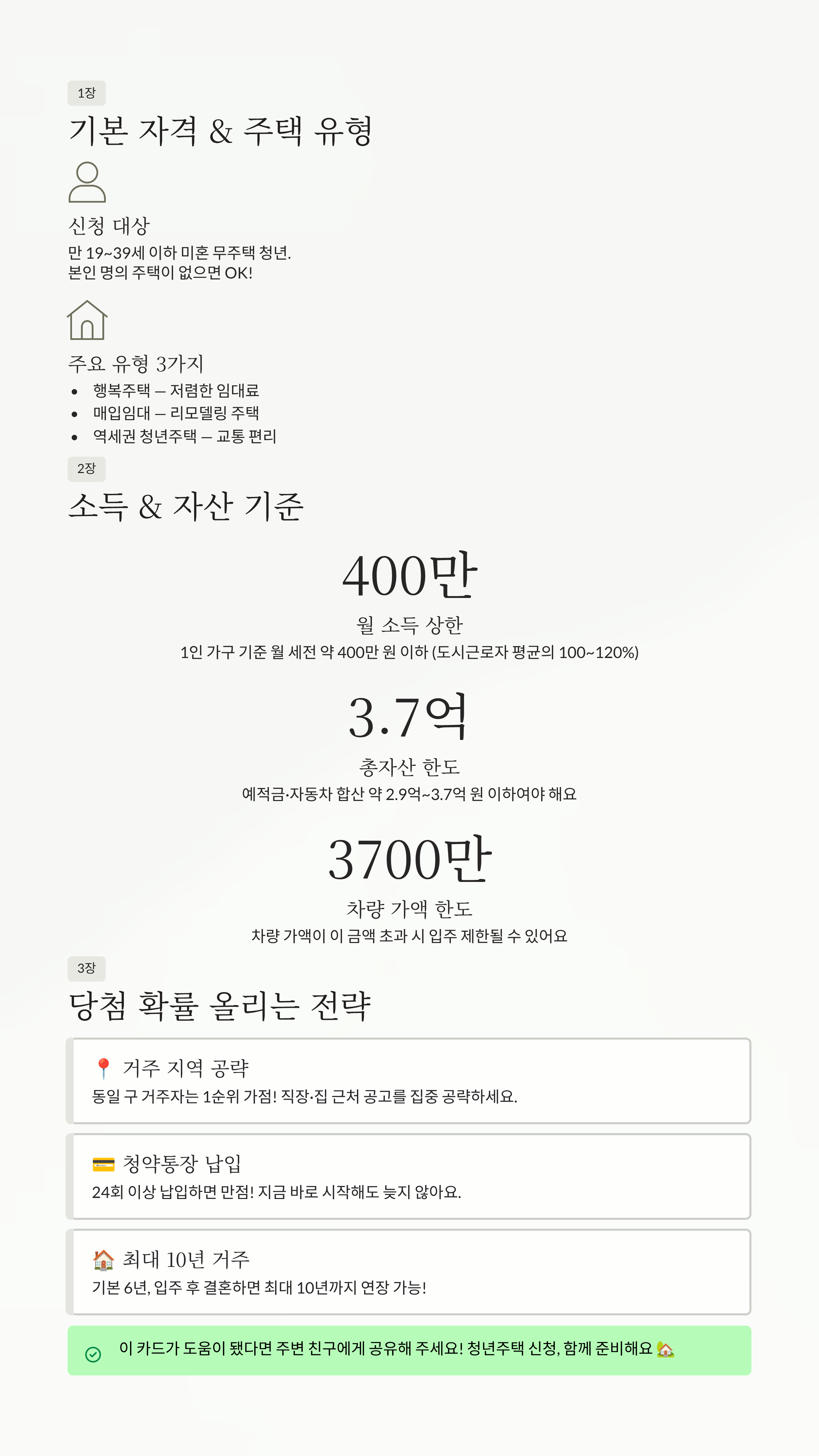 - 비결: 꾸준한 공고 확인과 본인 소득 기준에 맞는 공공임대 유형 집중 공략