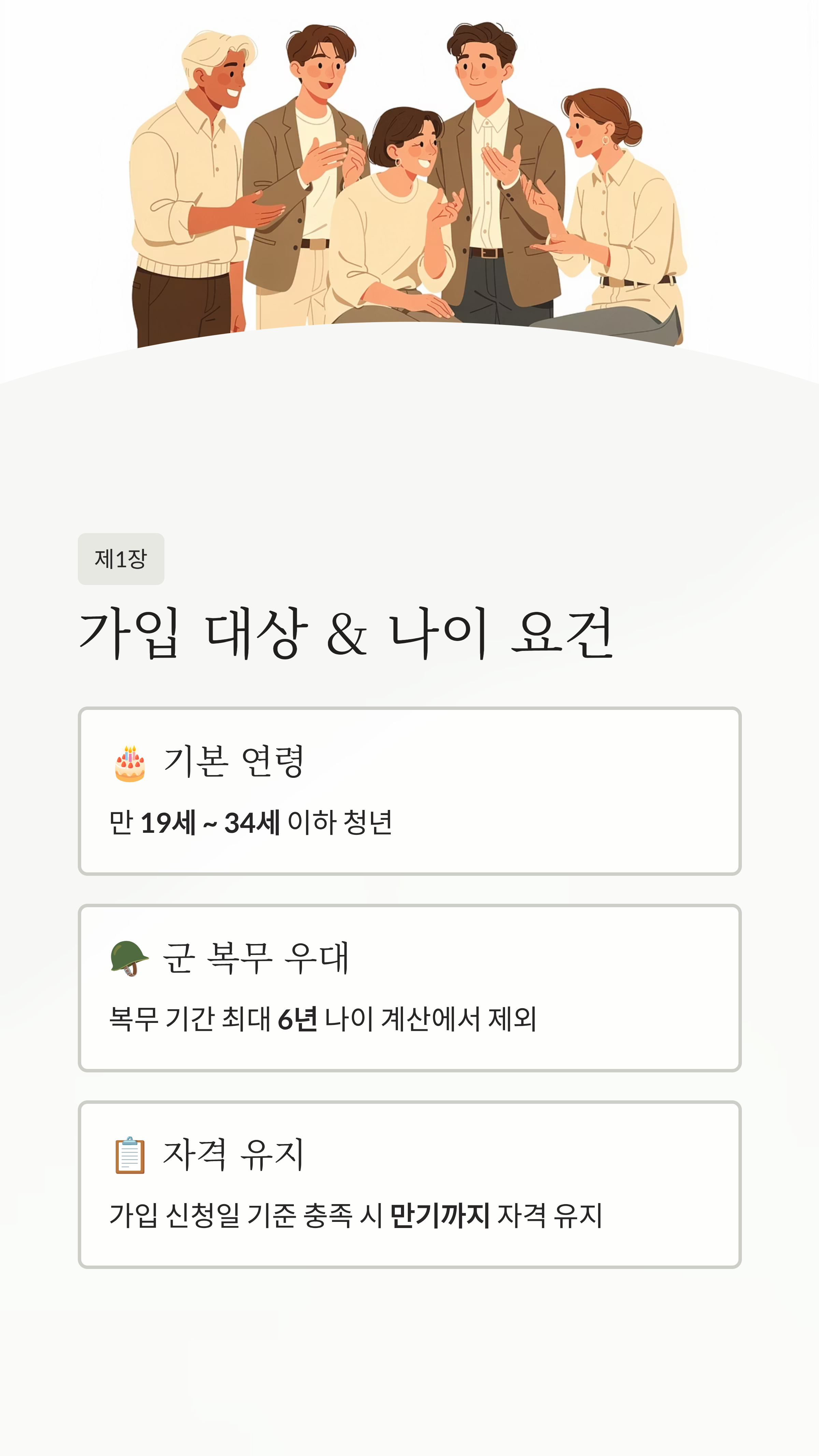 - 나이 조건: 만 19세~34세 (병역 이행 시 최대 만 40세까지).
