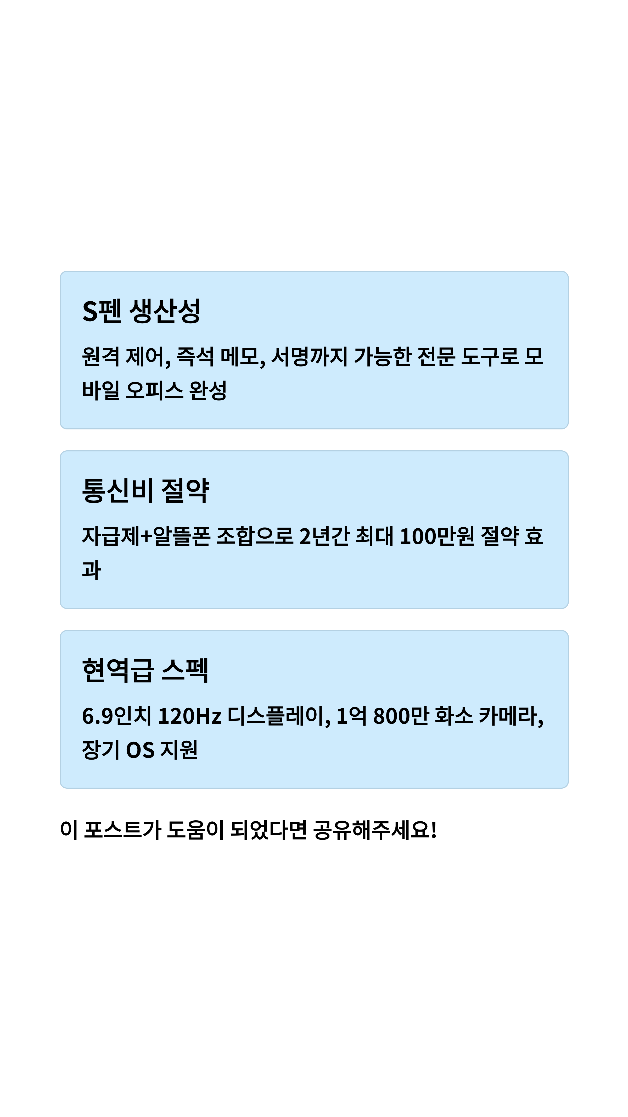 - 정보 1: **40대 직장인 박모모씨**. 기존 통신사 약정이 만료되어 새로운 폰을 고민 중. 업무 상 메모와 문서 작성이 잦음.